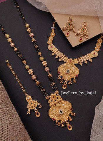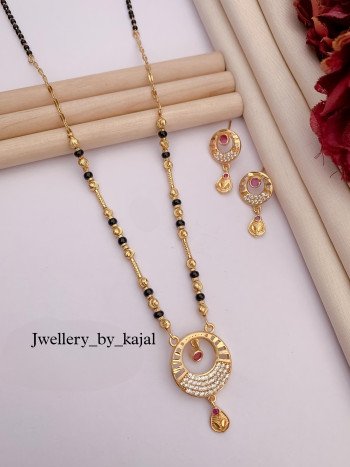 Gift your partner a modern yet traditional mangalsutra in an artificial gold finish. These lightweight yet stylish pieces symbolize love and commitment while being versatile enough for daily wear.