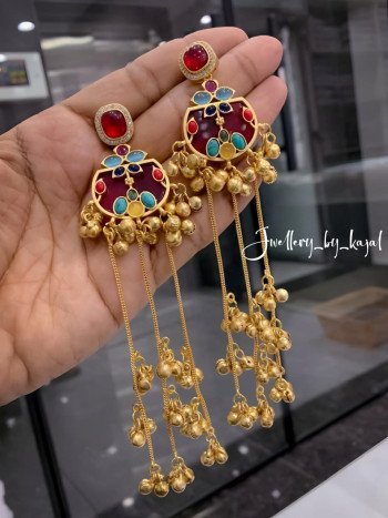 ✨Product: Luxurious Antique Gold Jhumka with Cascading Pearls