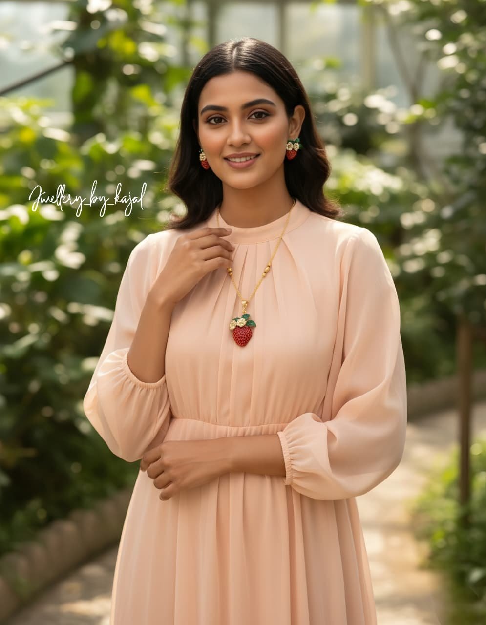 Strawberry Look Pendant Set with Matching Earrings