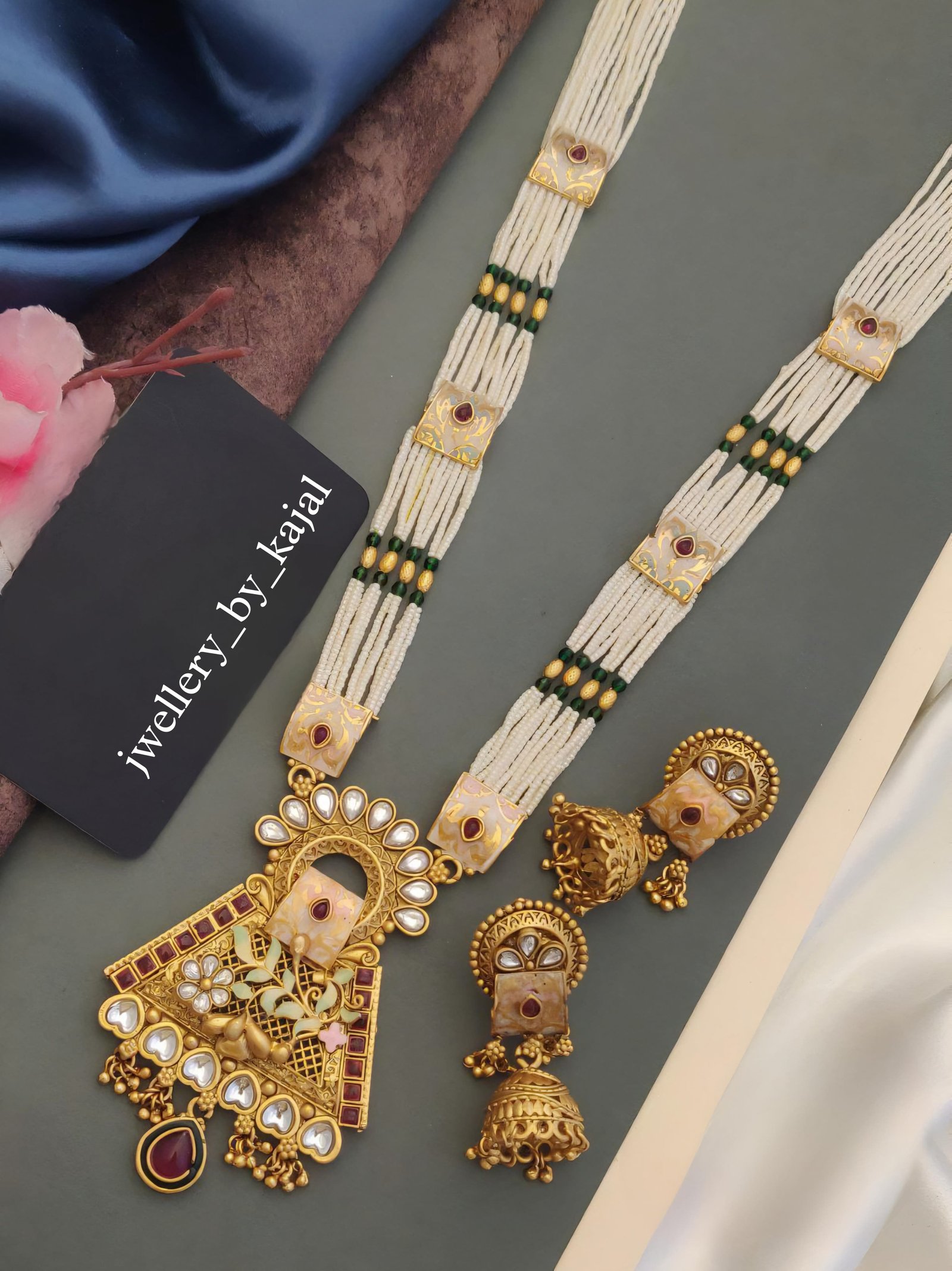 jwellery by kajal Luxury Redefined Long Necklace and Pendant Set with High Fashion Earrings