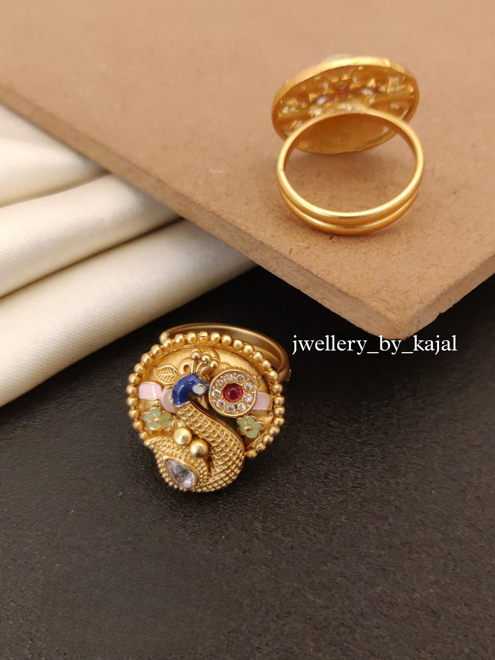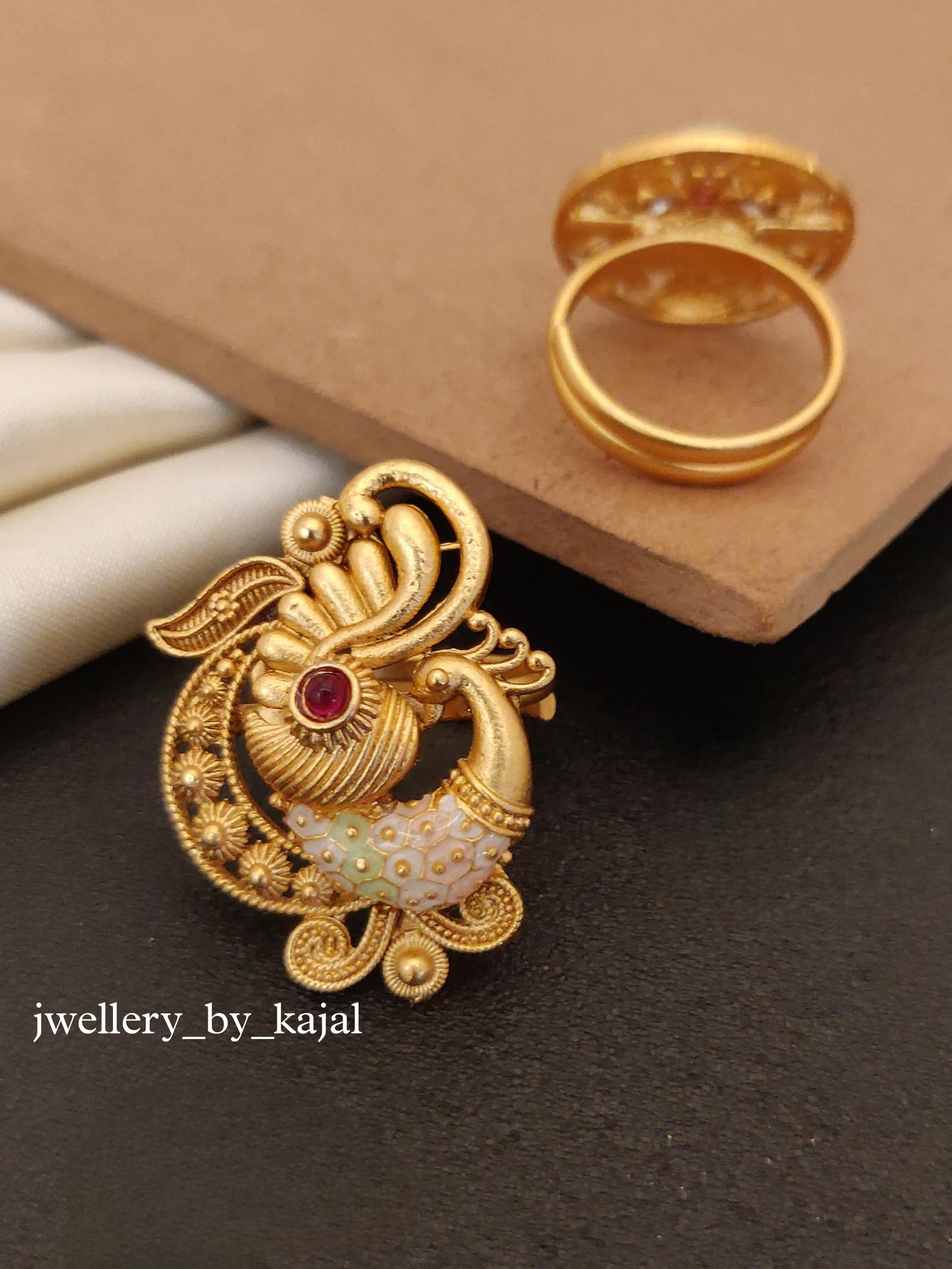 Peacock Royal Radiance Brass High Gold Ring Real Gold Appeal Jwellery by kajal