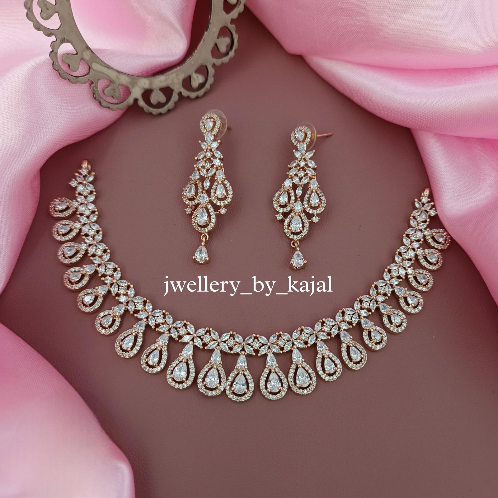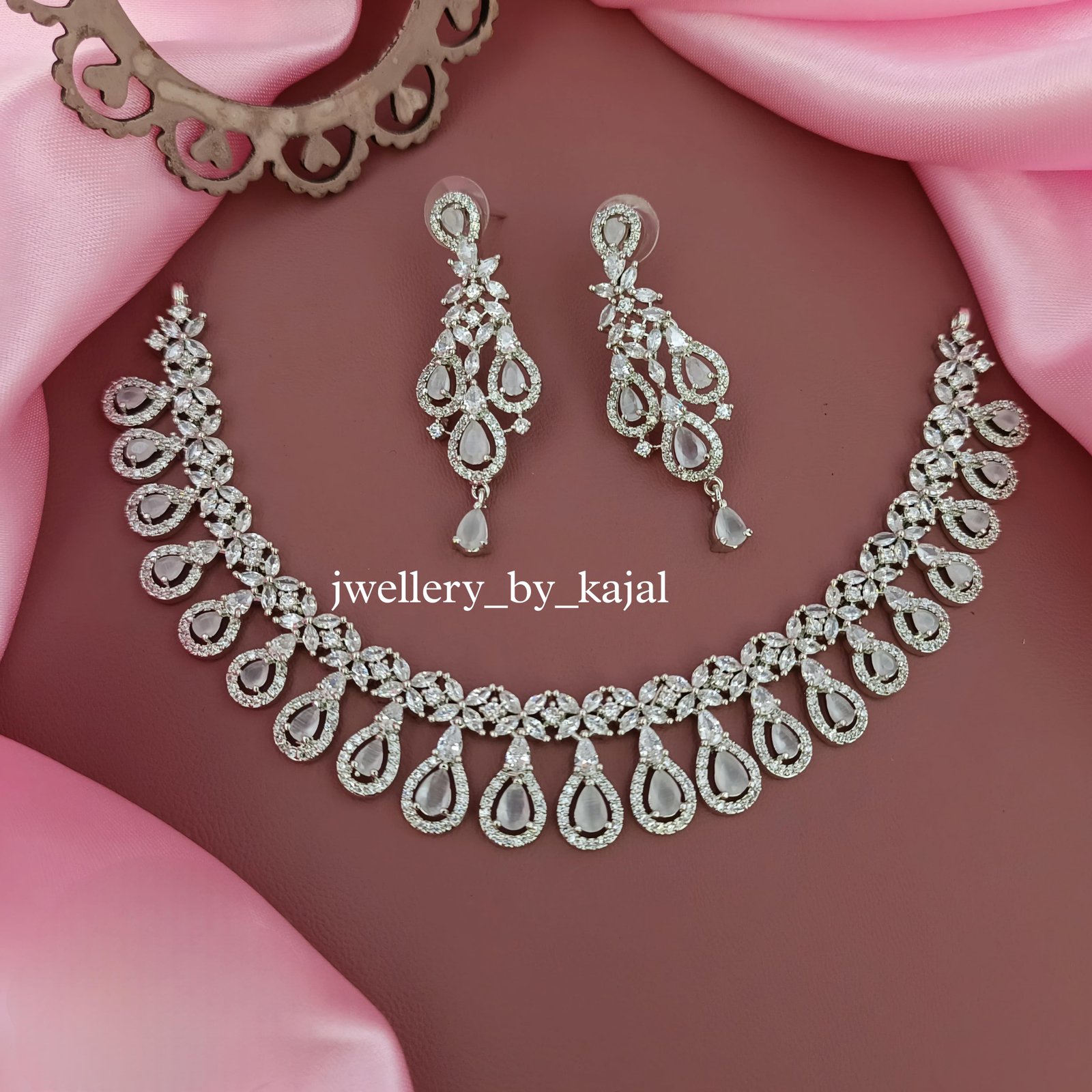 White American Diamond Set with Indian Design -HIGH END JEWELRY