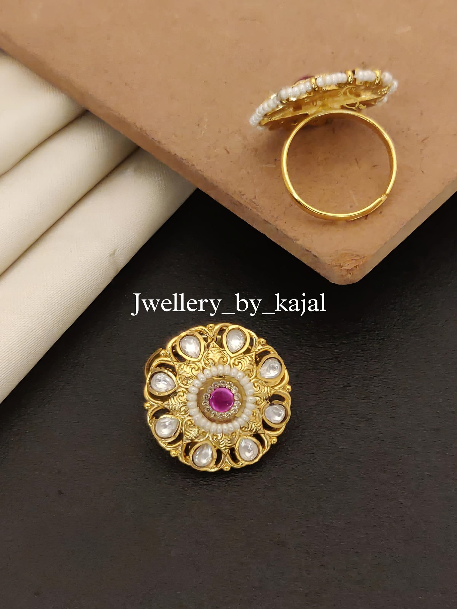 22K Gold Look Kundan Ring ✨ Premium Adjustable Design | Jwellery by Kajal