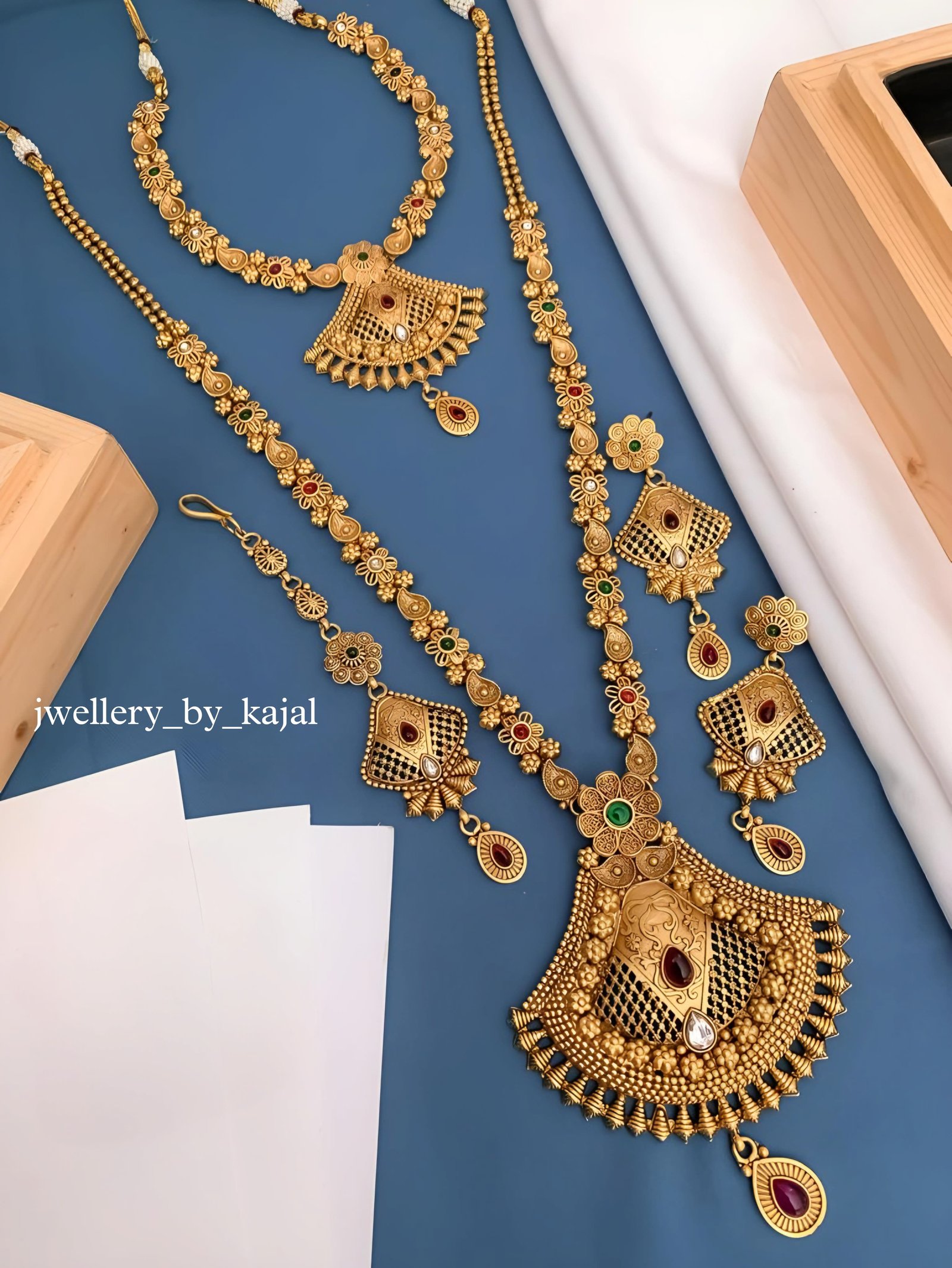 24k Gold Plated Long Necklace with Matching Earrings Real Gold Look jwellery by kajal