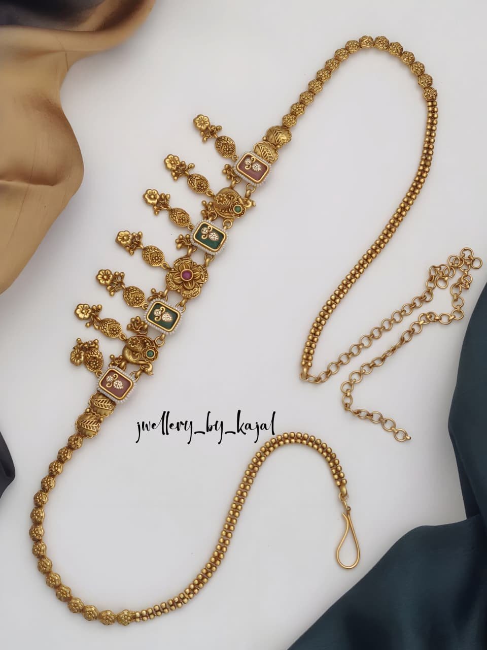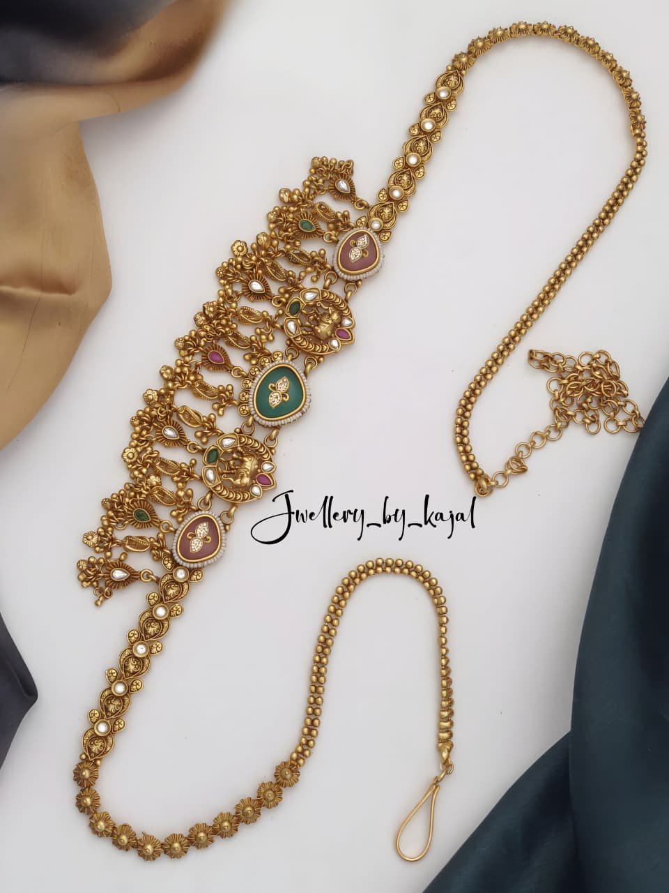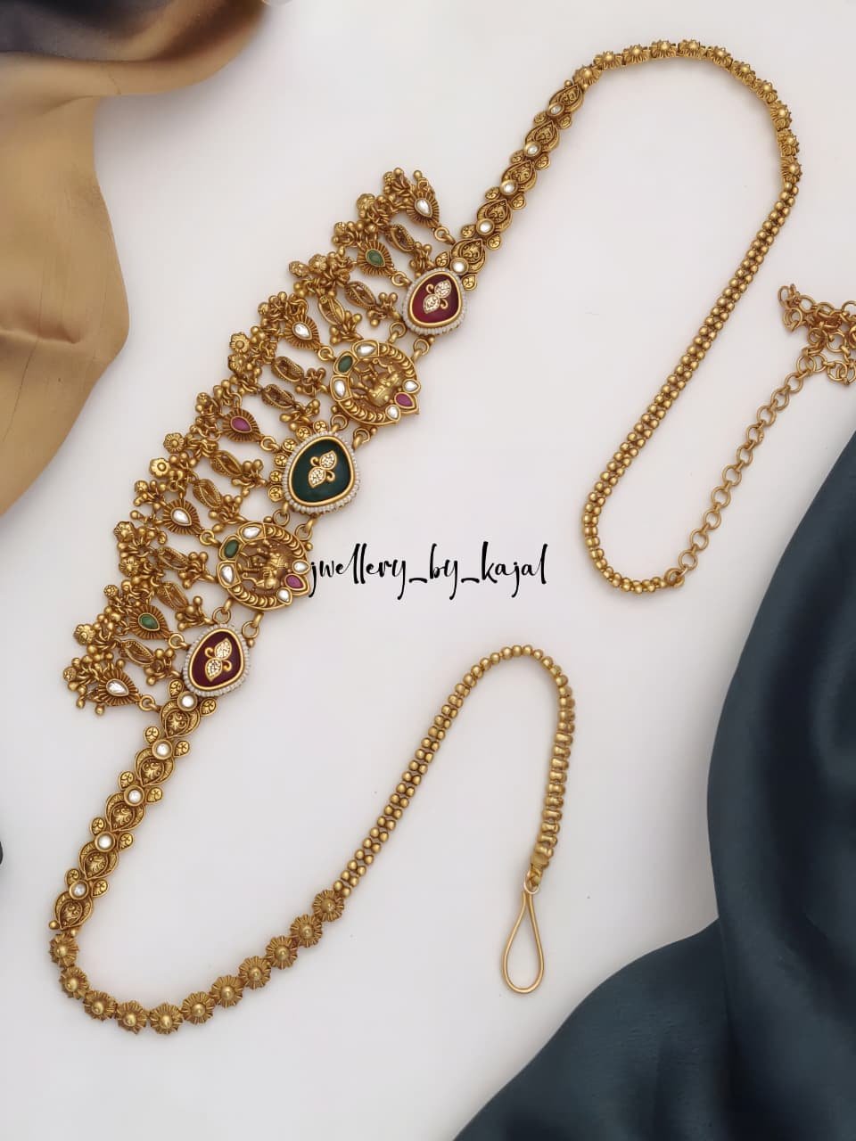 Adjustable 18K Gold Finish Kamarbandh Traditional Motif Waist Belt for Festivals