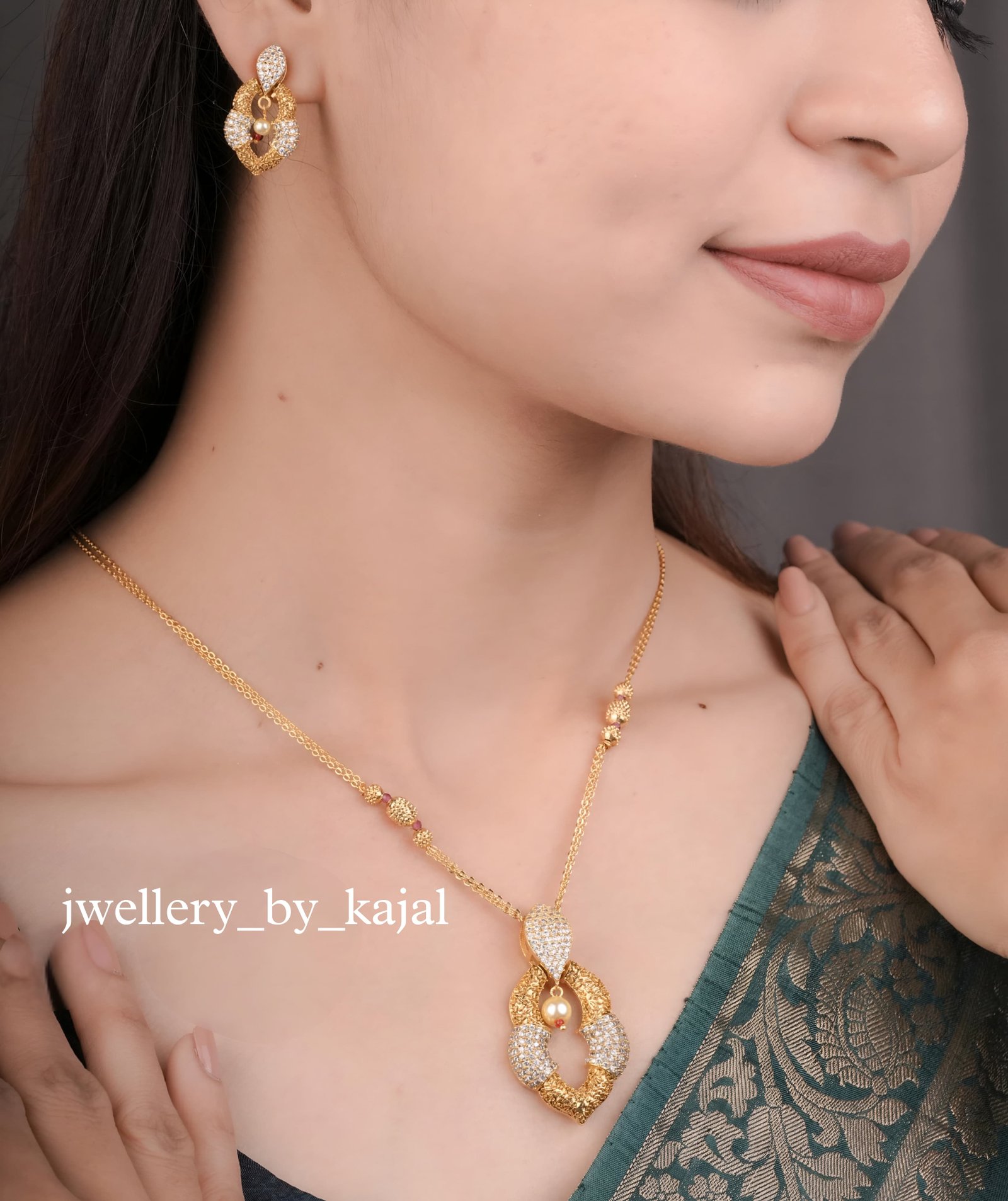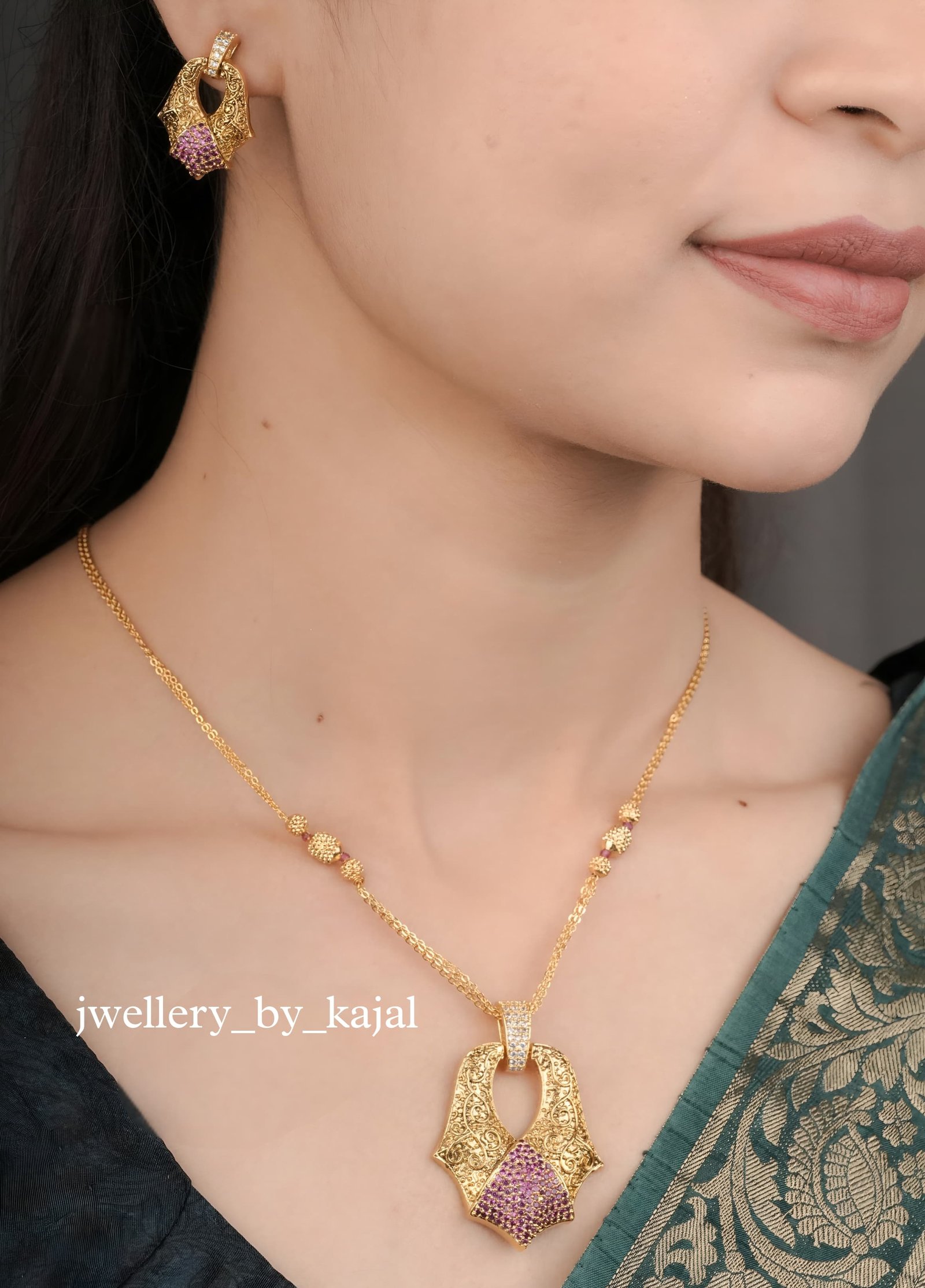 ✨ 24K Gold Look :-Brass High-Gold Finish Pendant Set with Earrings – Stylish Jewelry for Women & Girls