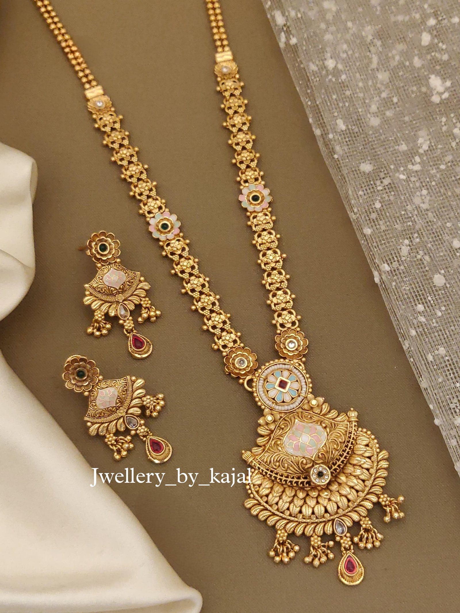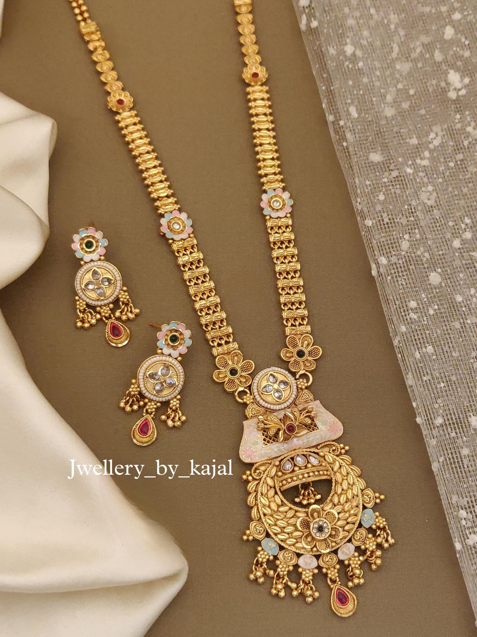 Bridal Kundan Long Set | High Gold Finish Necklace with Earrings | Jwellery by Kajal