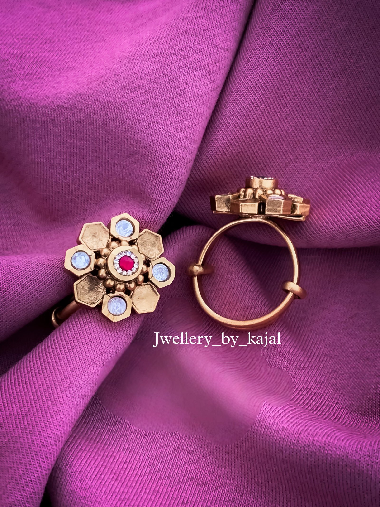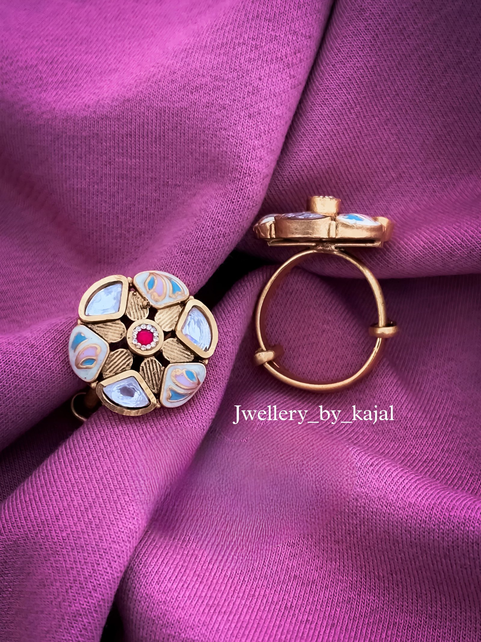 Buy 1 Get 1 Free - Antique Round Golden Kundan Ring | Perfect for All Occasions