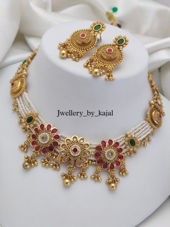 22K Gold Look Kundan Ne...