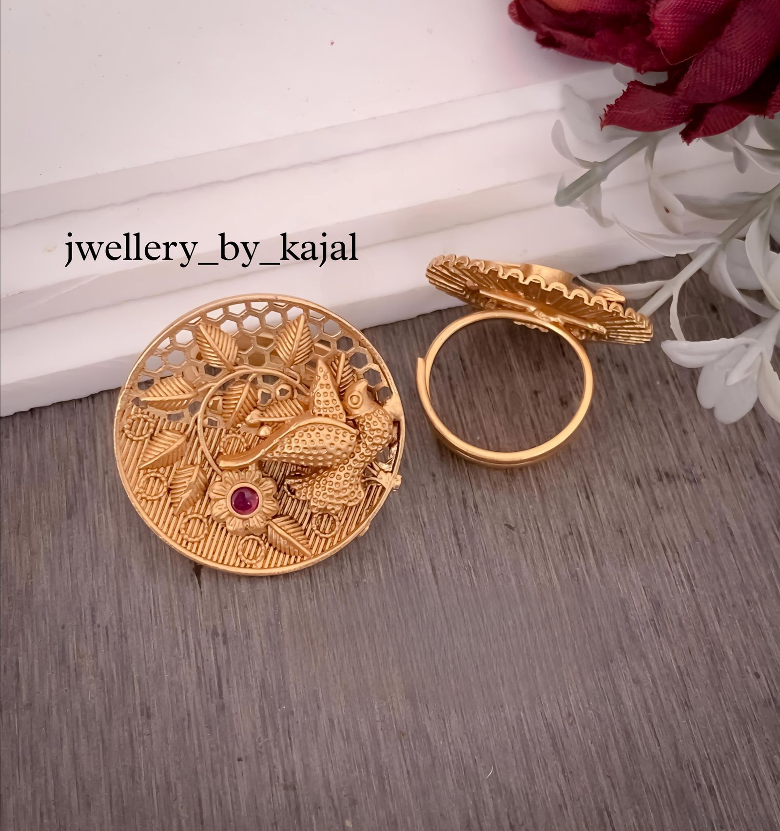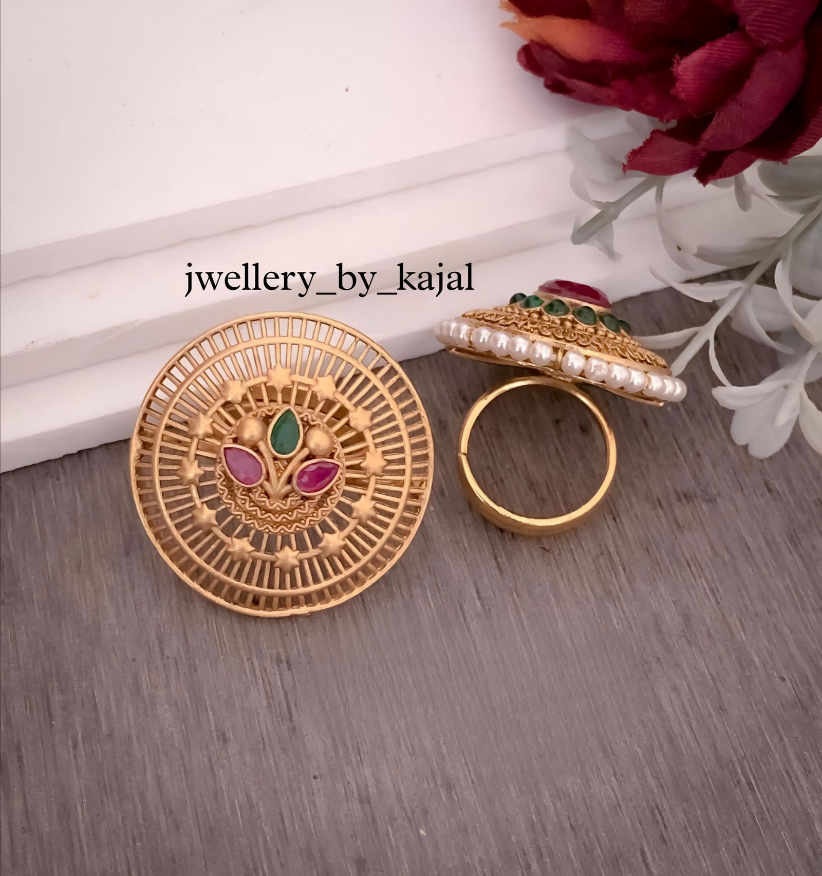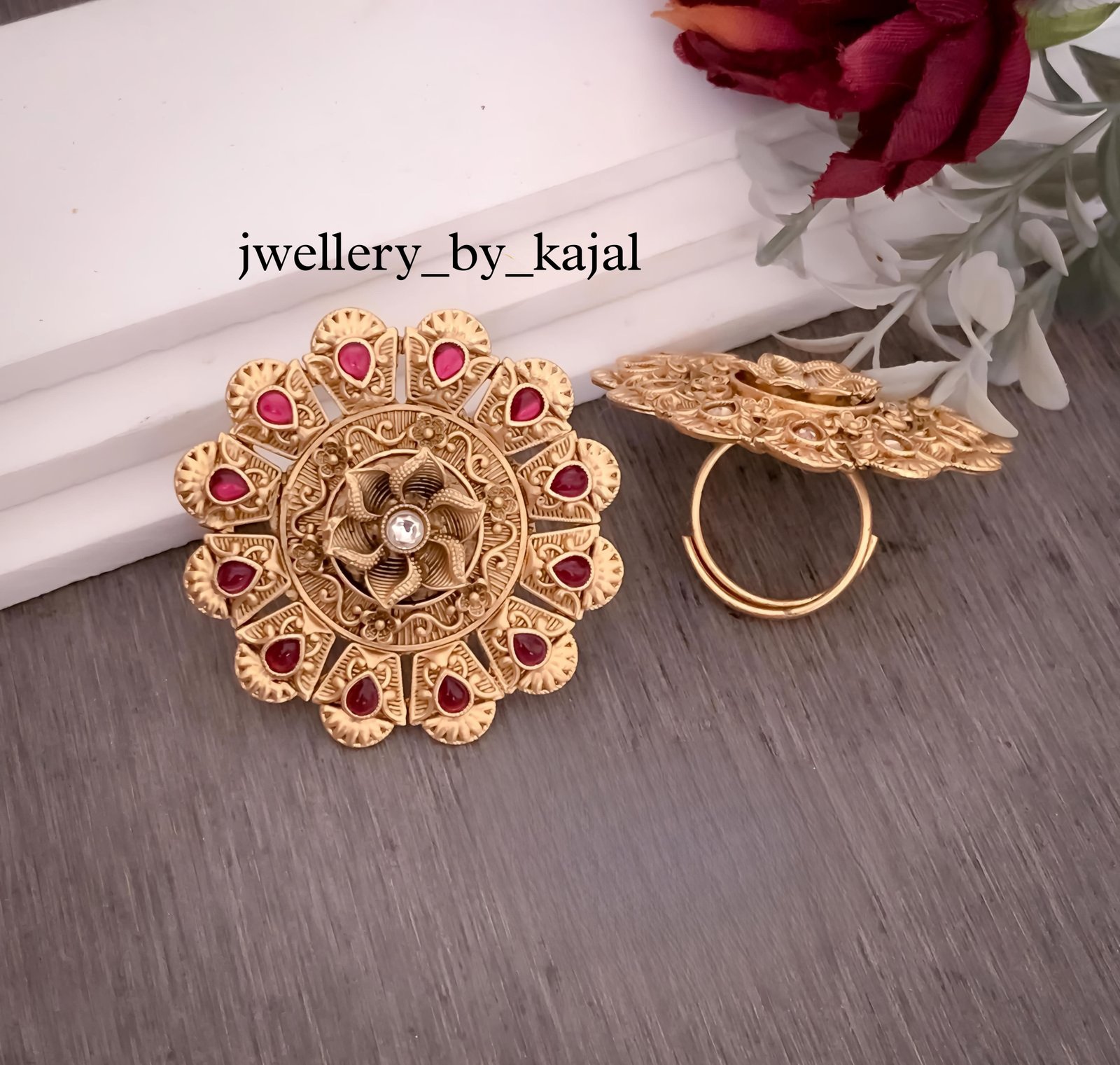 circle Antique Allure: Brass Gold Ring-PREMIUM LOOK JEWELRY