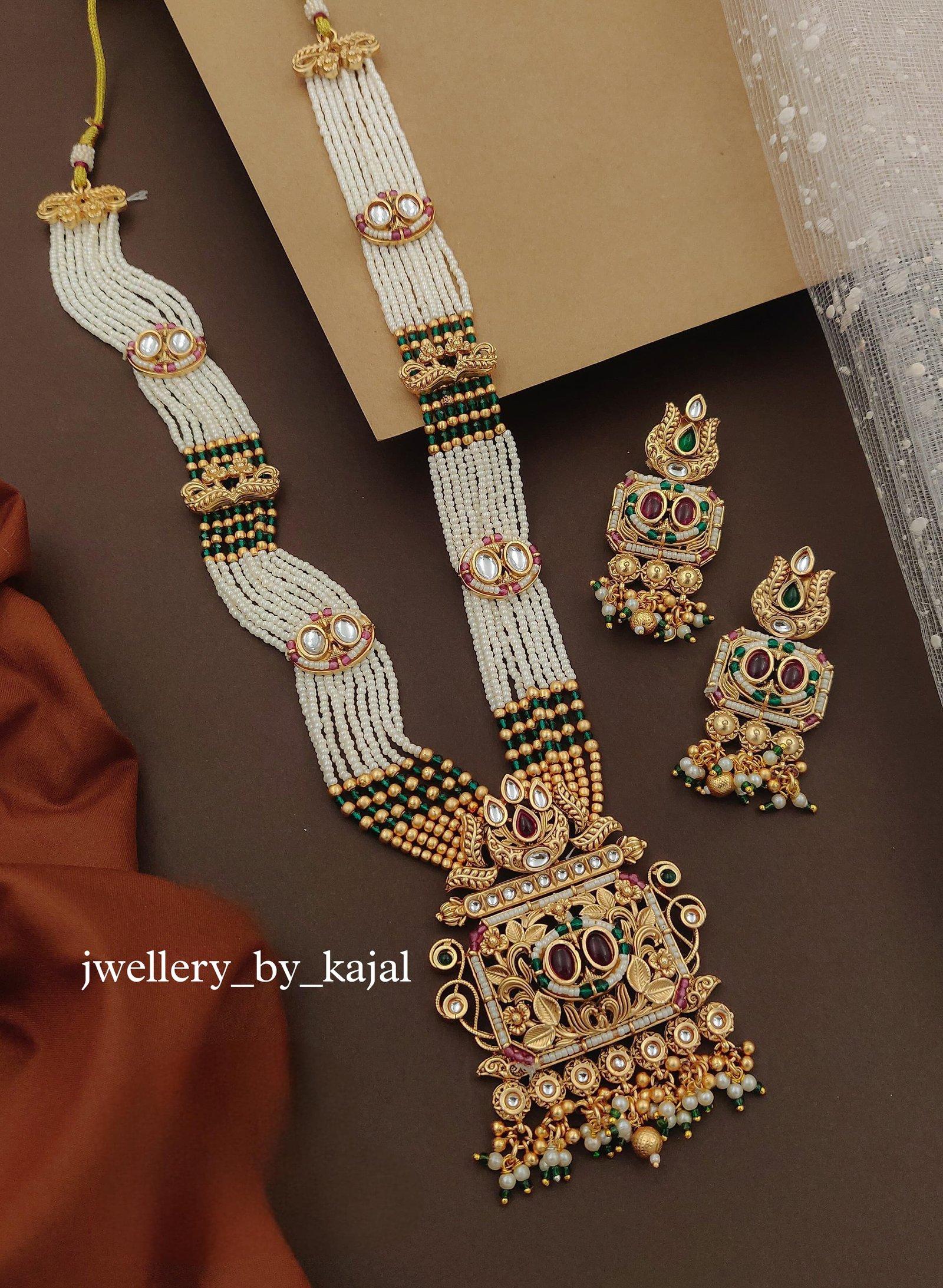 Classic Long Moti Necklace Set with Earrings Inspired by Kareena Kapoor jwellery by kajal