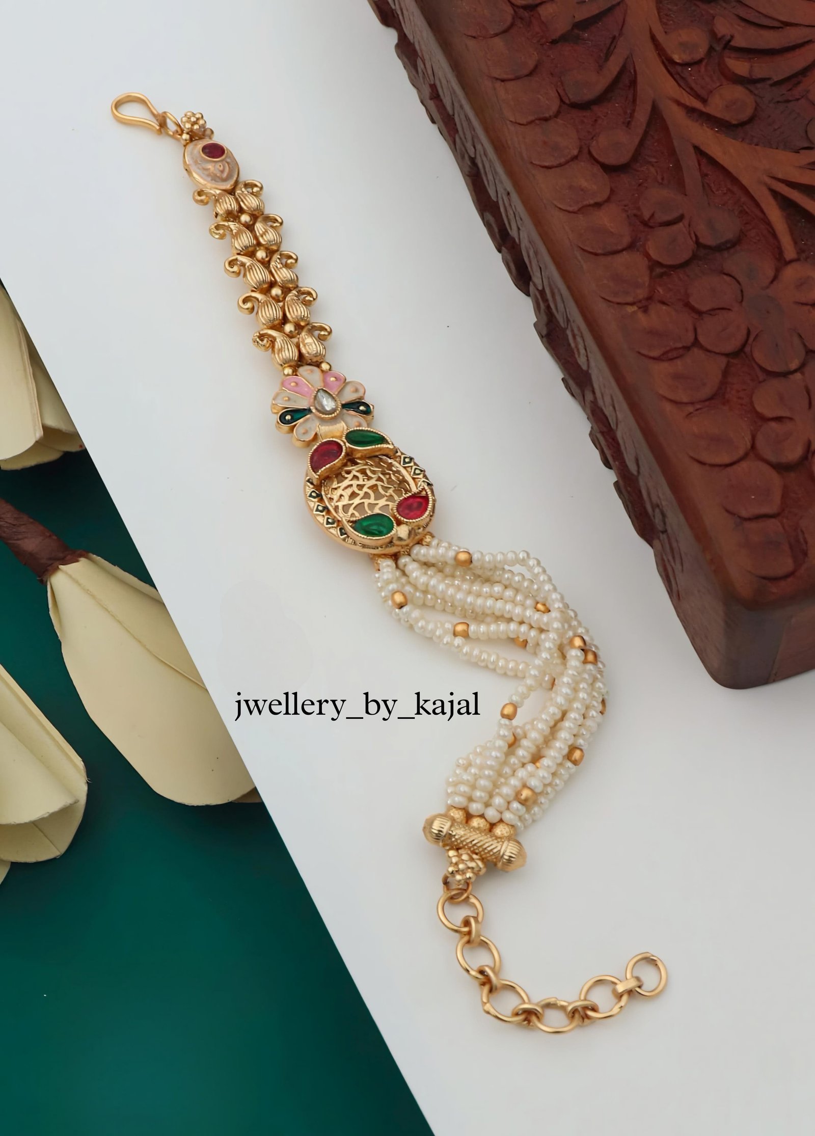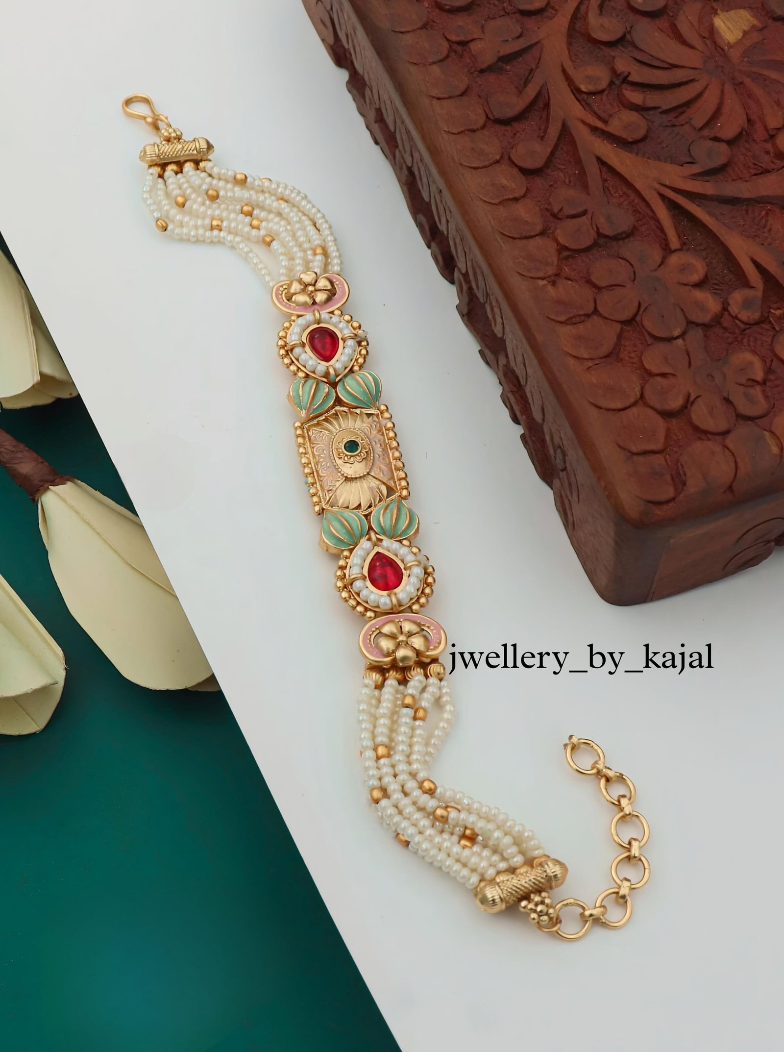 Colourful White Pearl Adjustable Kundan Bracelet Adjustable Size - PREMIUM LOOK JEWELLERY