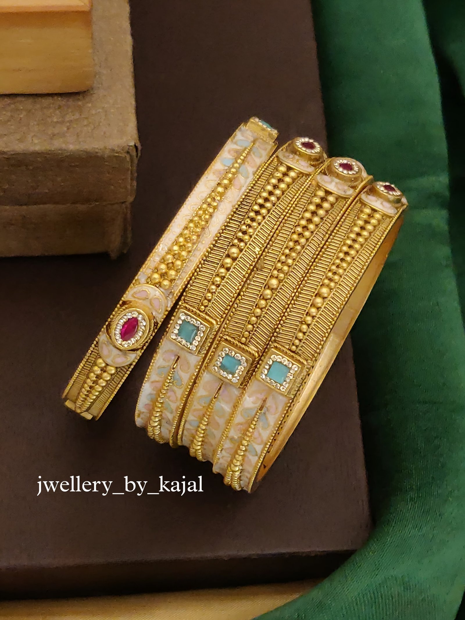 Elegant Brass Bangles for Shadi – 6-Piece High-Gold Set, 22K Inspired