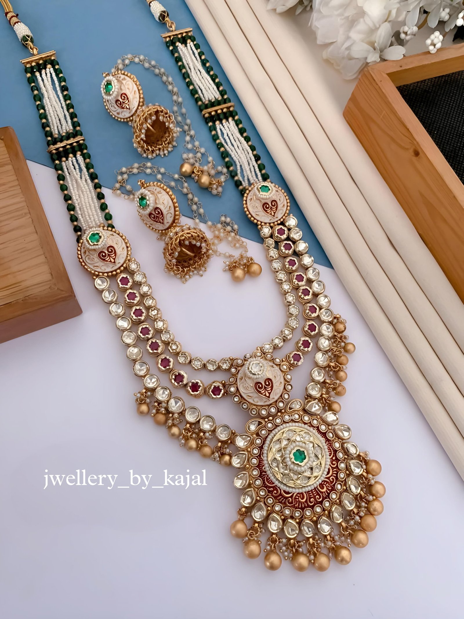 Elegant Bridal Kundan Set Multi-Layer Necklace Earring, 24k Gold Finish jwellery by kajal