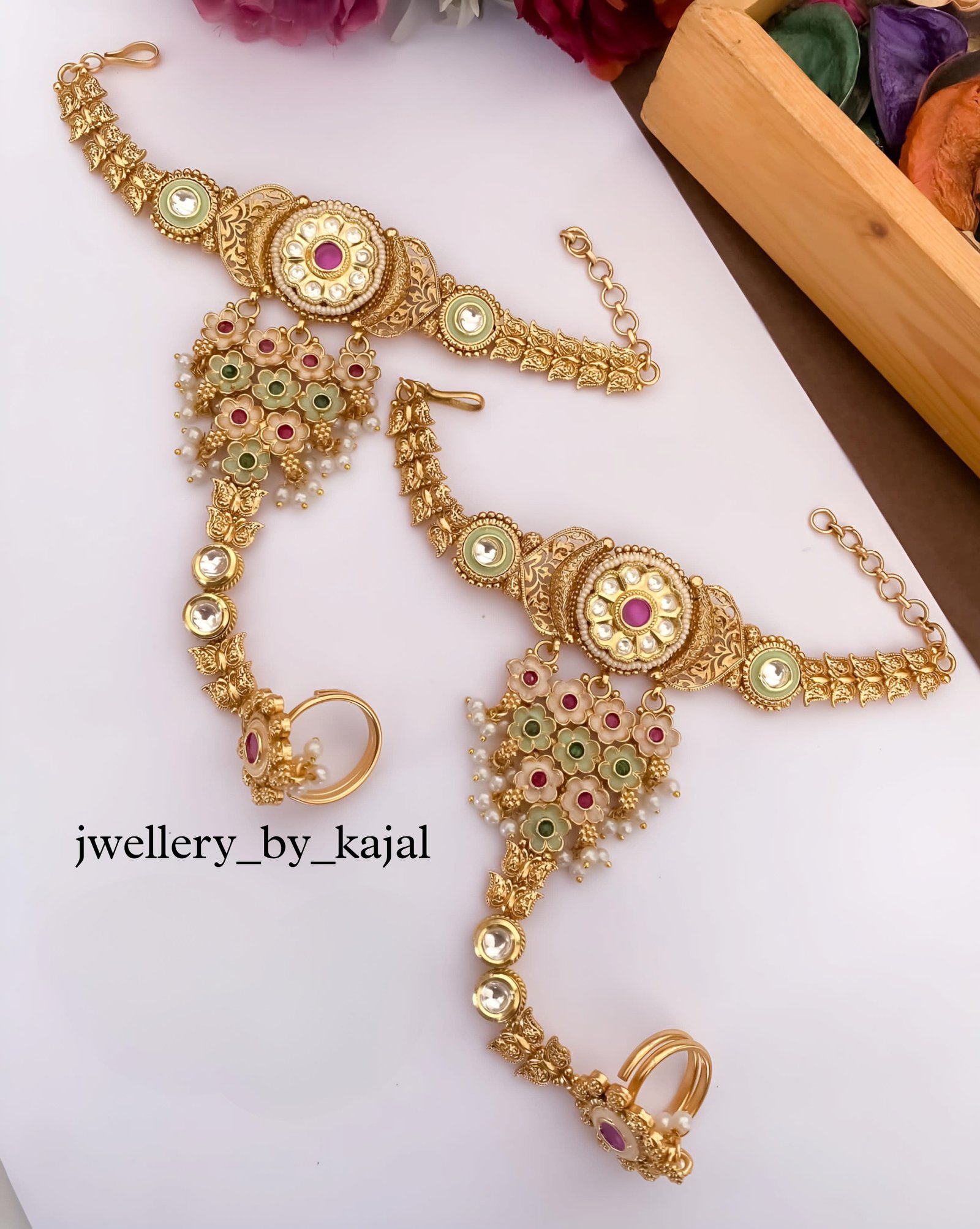 Elegant Rajputi-Style Brass High-Gold Hathful Panja – For the Perfect Wedding Look