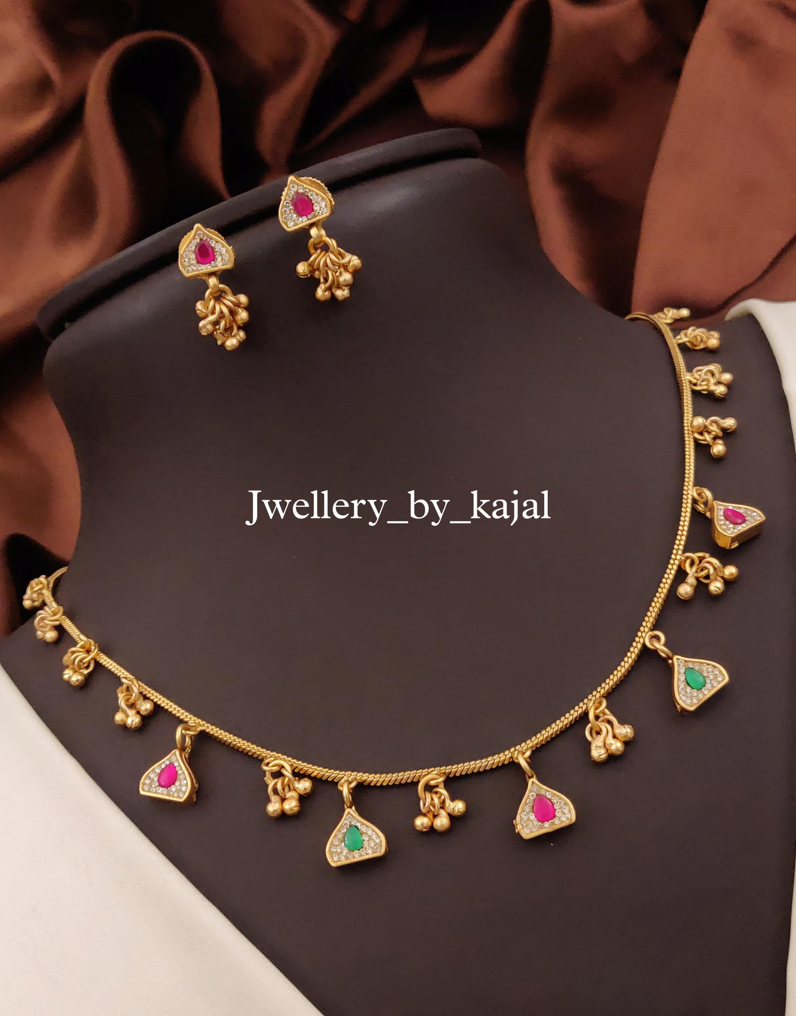 Everyday Glam Gold Look Chain 💛 Elegant Stone Necklace | Jwellery by Kajal
