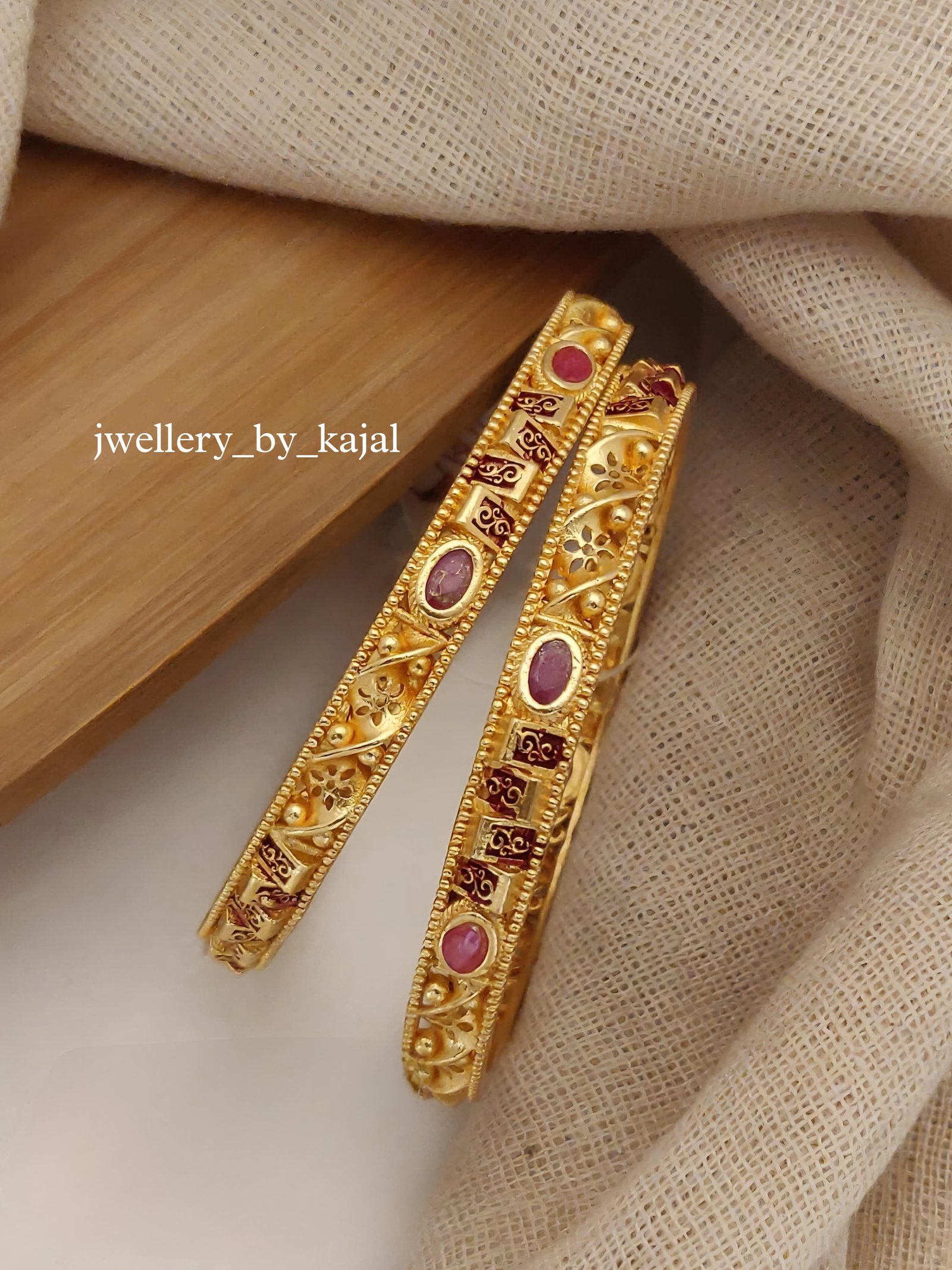 Fancy Gleaming Brass Kada Pair in Gold Style-PREMIUM LOOK JEWELRY