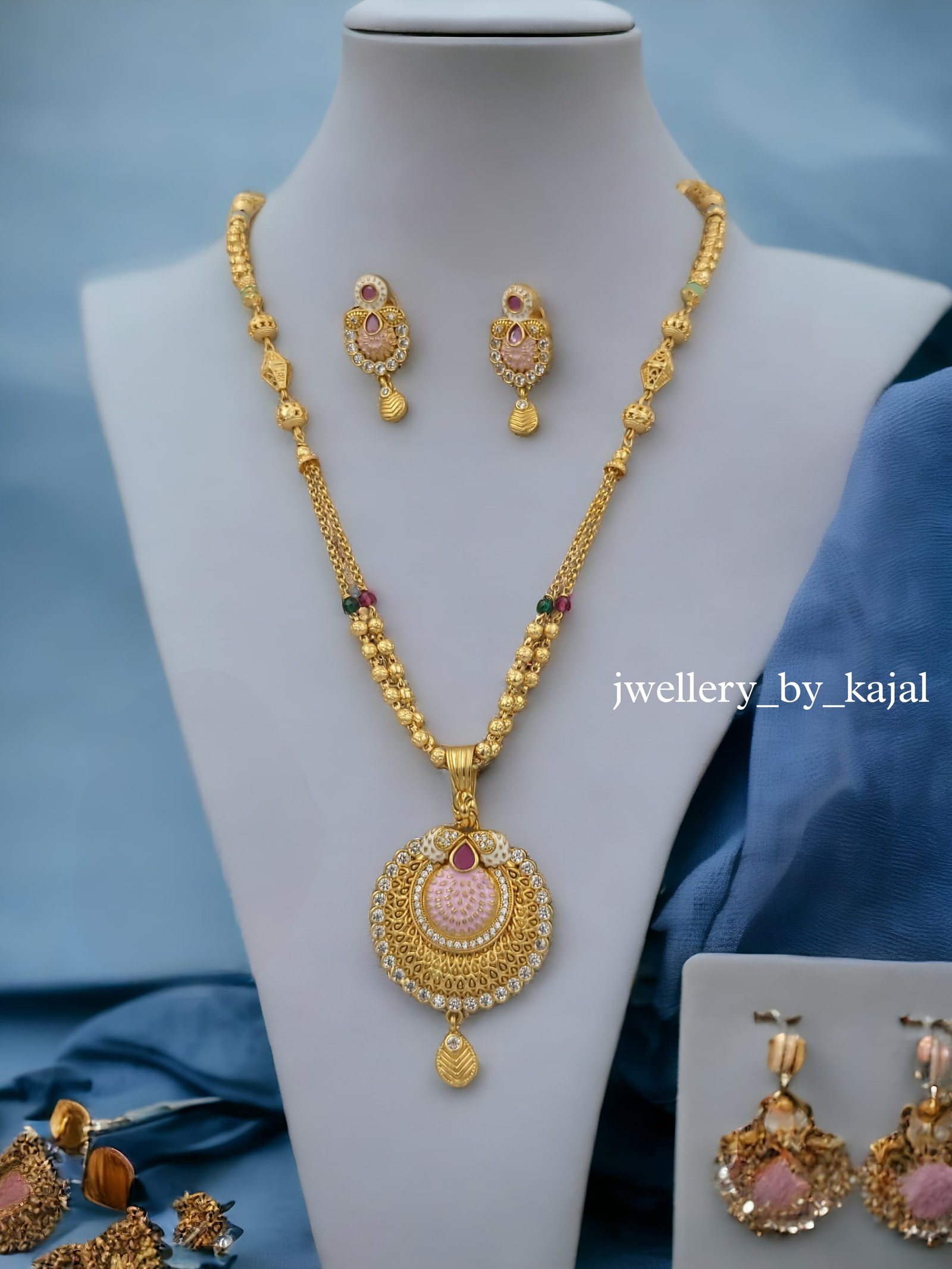 Festive Glam High Gold Brass Pendant & Earrings Real Gold Finish jwellery by kajal