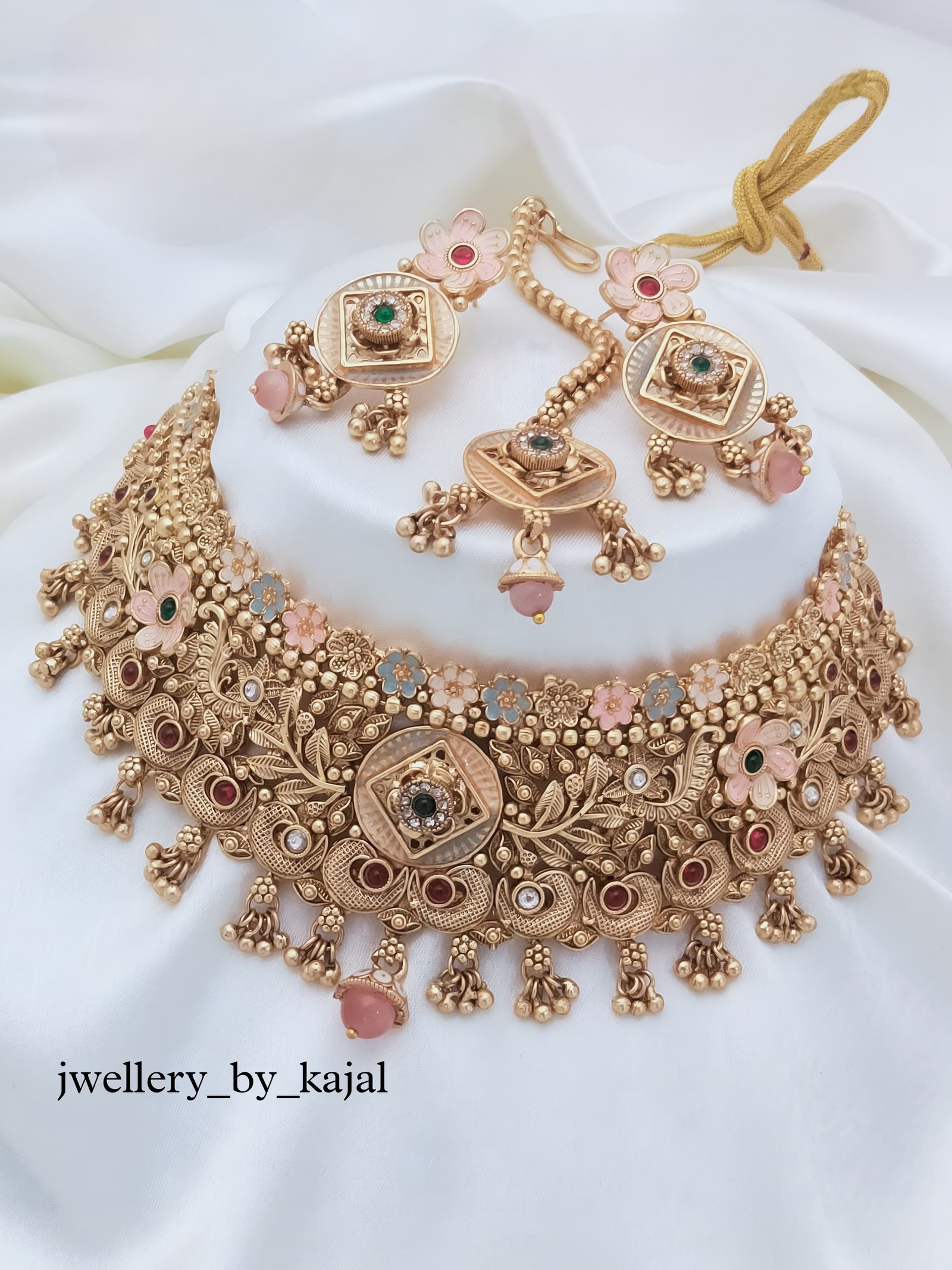 Festive Glamour Gold Finish Choker & Earring Set – Diwali Collection jwellery by kajal