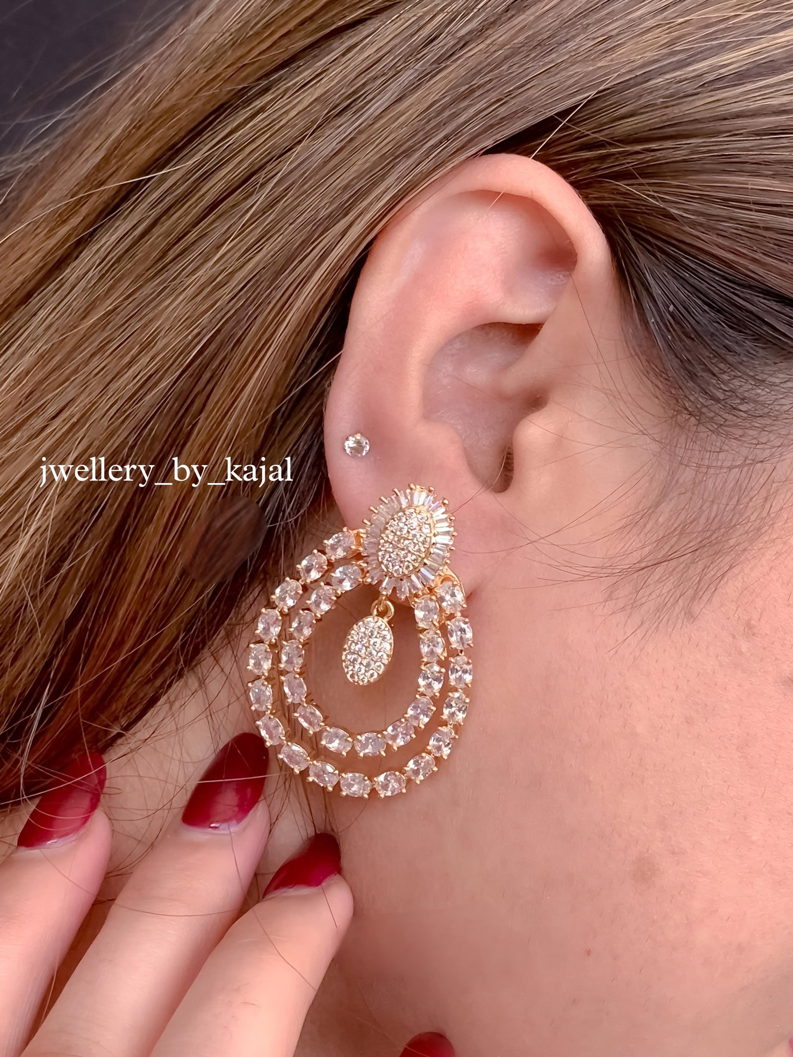 ✨ 24K Gold Look :-Glam Rose Gold Plated Drop Earrings – American Diamonds & Beaded Drop Design
