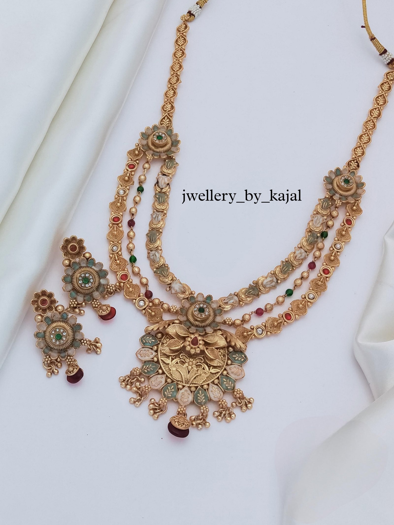 Gleaming 3-Layer Long Necklace Navratri Brass High Gold Edition jwellery by kajla