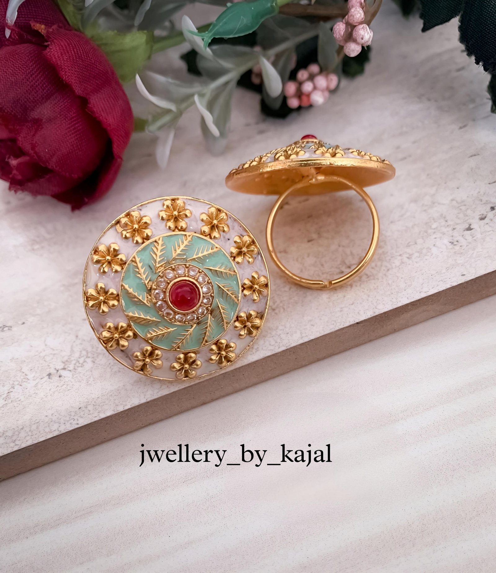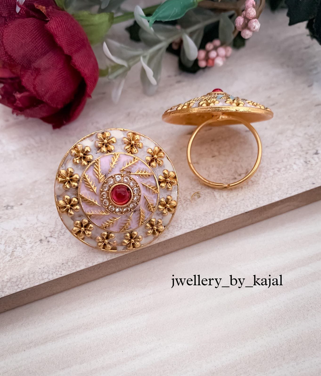 Golden Glow: Brass High Gold Meena Work Adjustable Rings