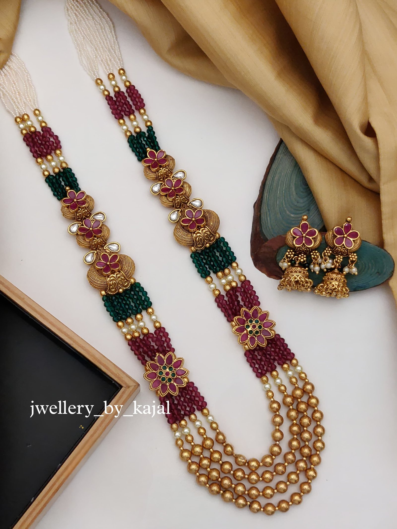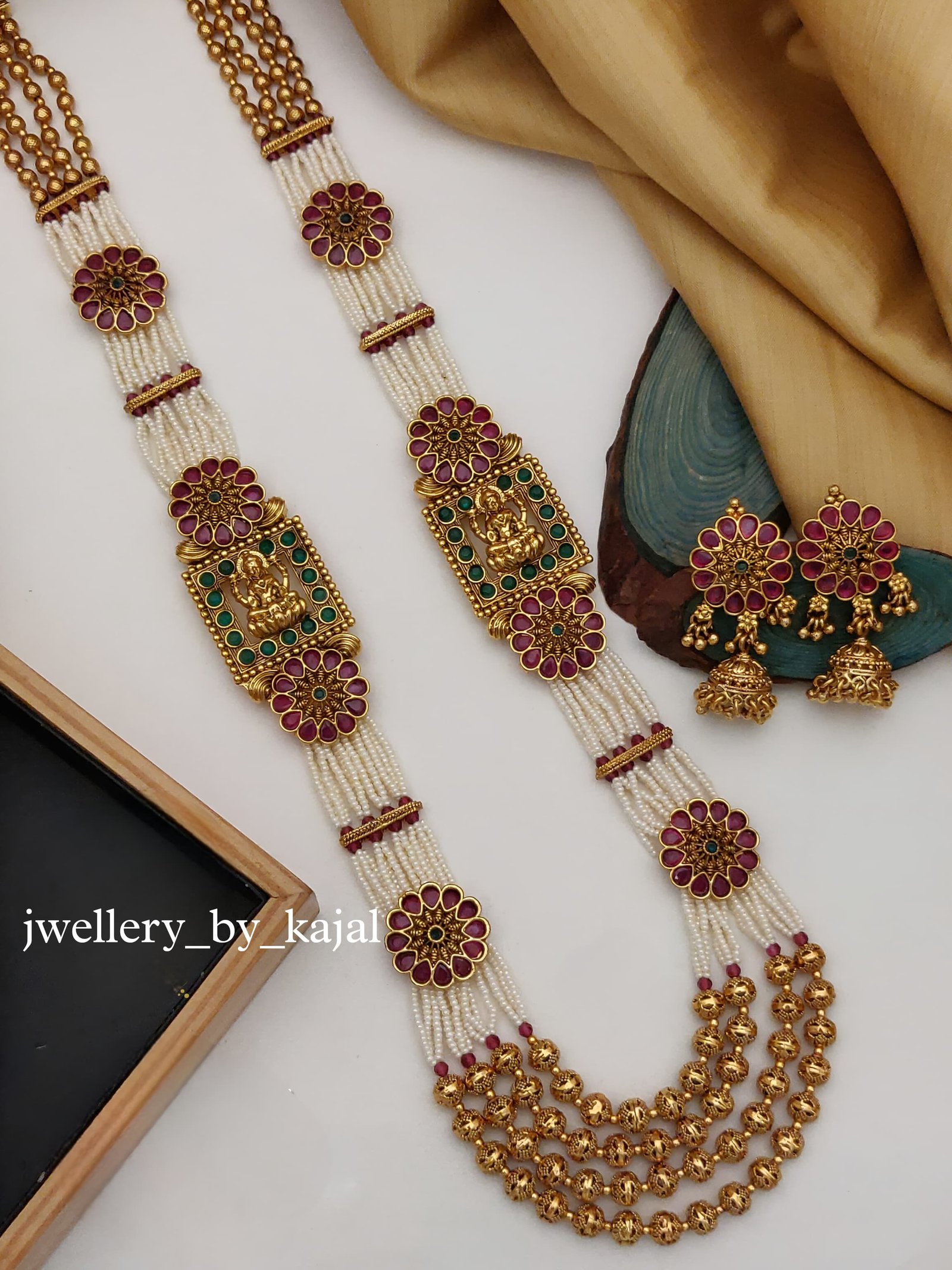 Golden Glow: Moti Mala Long Necklace & Earrings Set for Brides