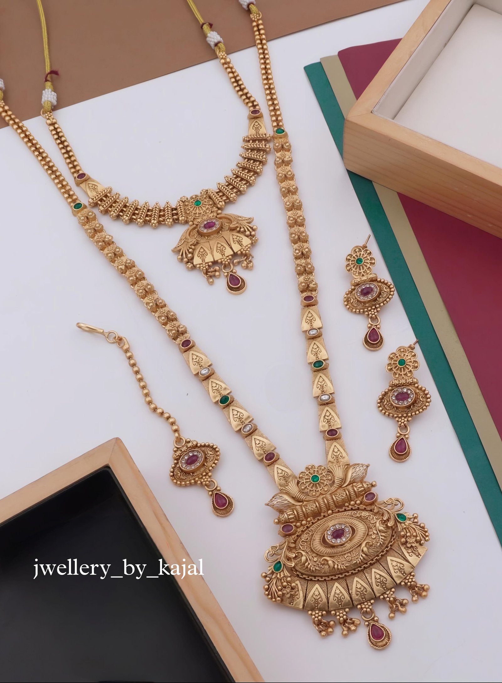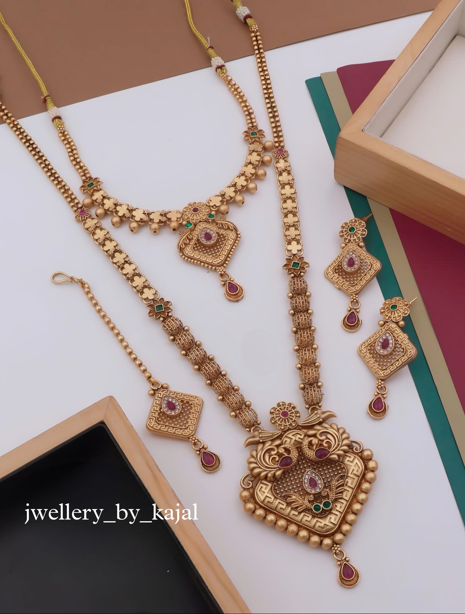 Golden Red Stone Combo Pack Look Like A Real One - SUPREME LUXURY JEWELLERY