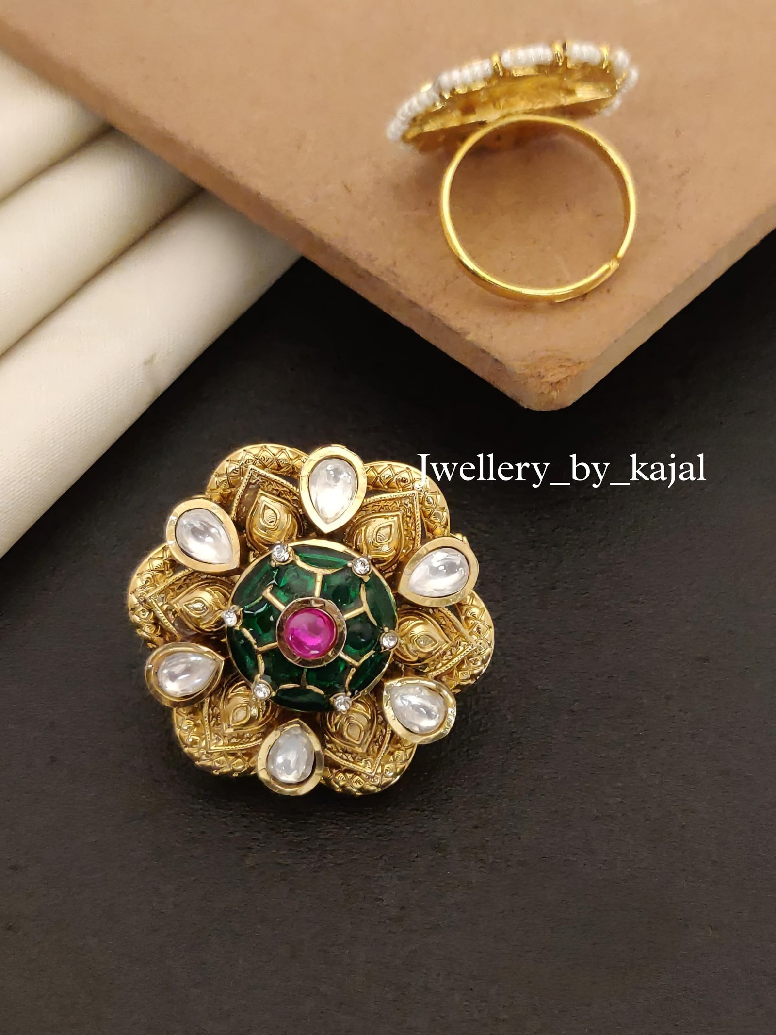 Grandeur Kundan Ring | High Gold Brass Statement