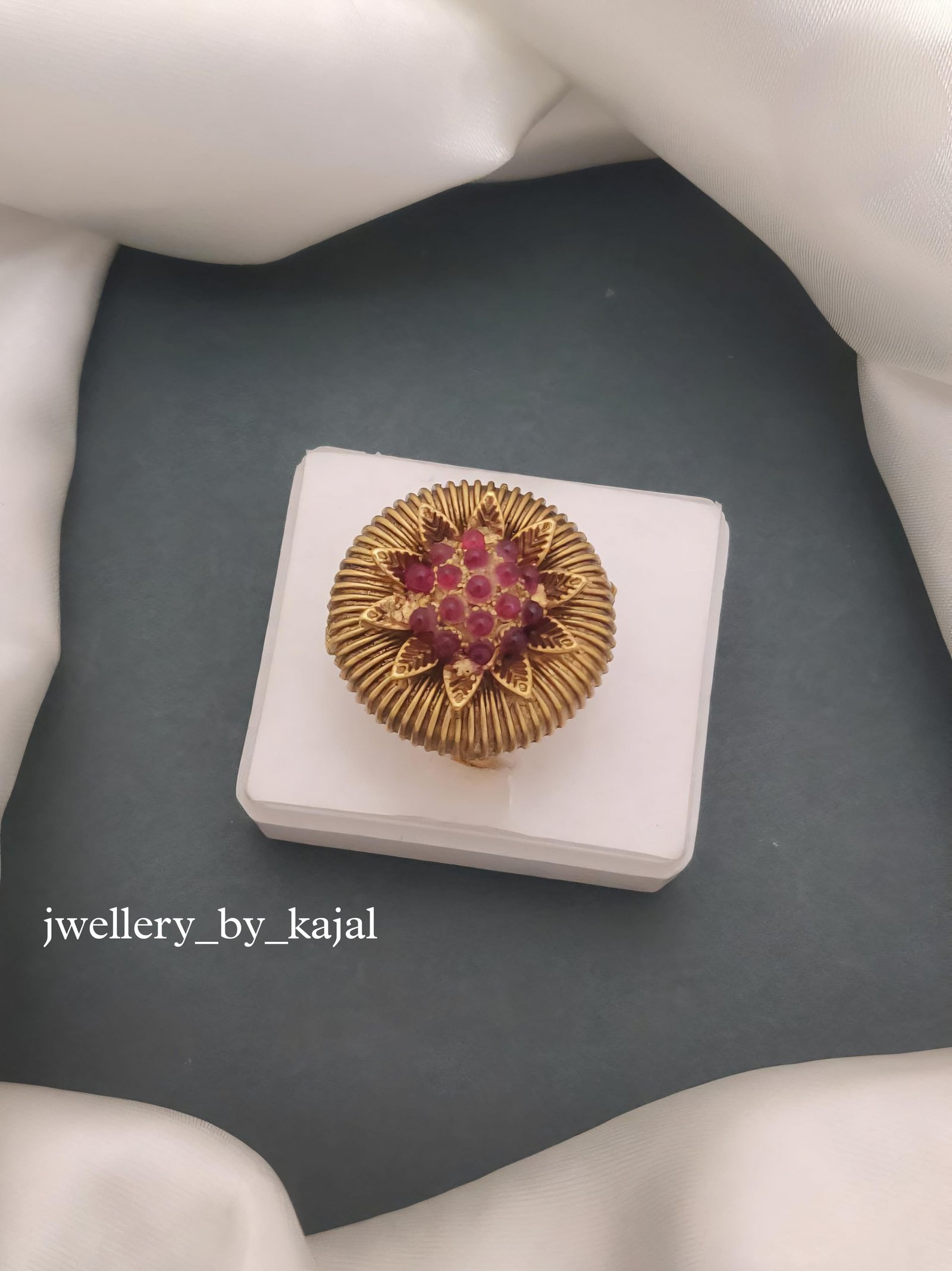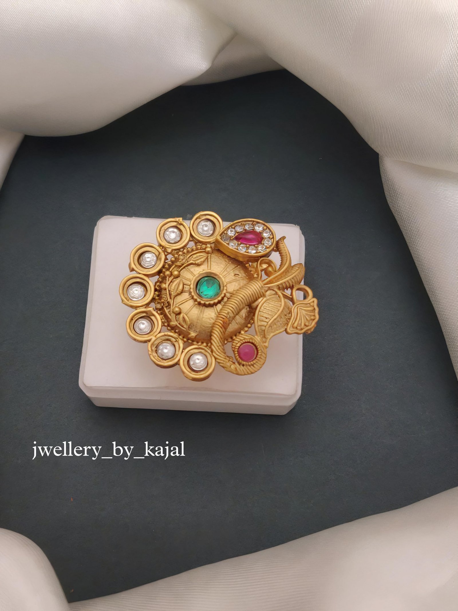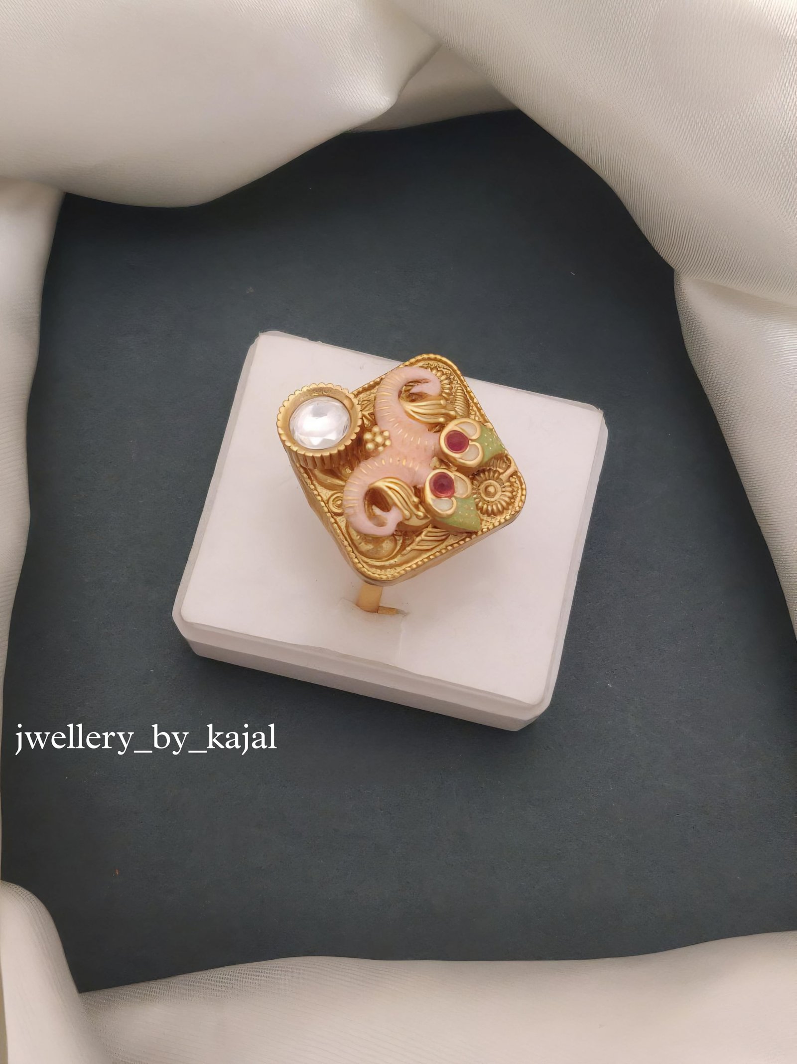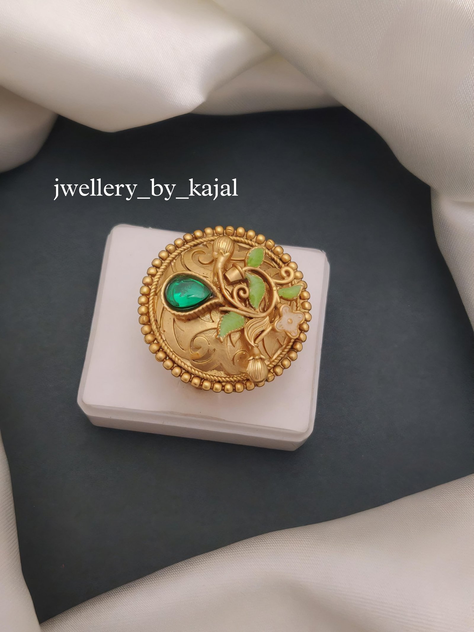 Green kundan Premium Brass Rings with Real Gold Look-PREMIUM LOOK JEWELRY