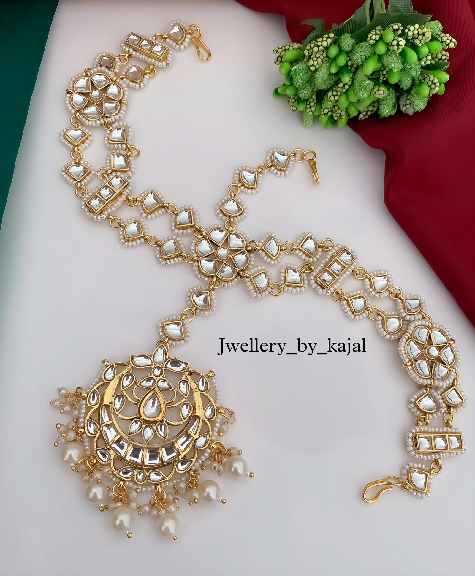 Inspired by Voylla: Regal Kundan Maang Tikka & Matha Patti – Elegant Wedding Jewelry