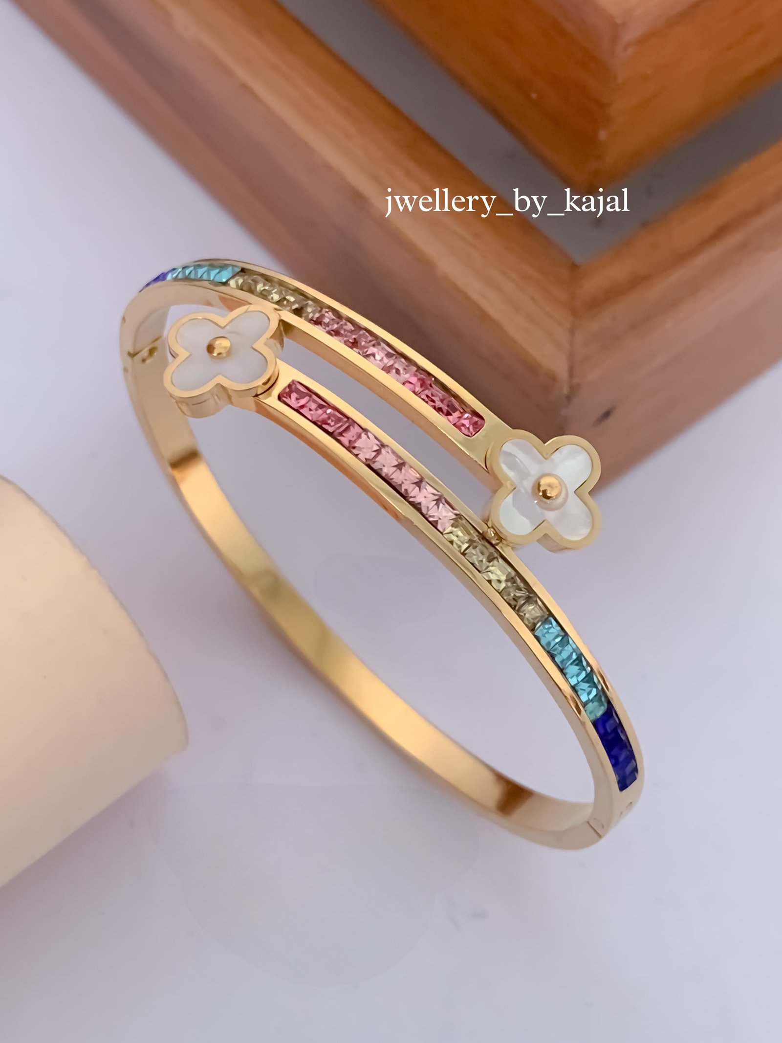 Jewels Galaxy Women Rose Gold Plated American Diamond Stainless Steel Bangle Bracelet(Onesize) by