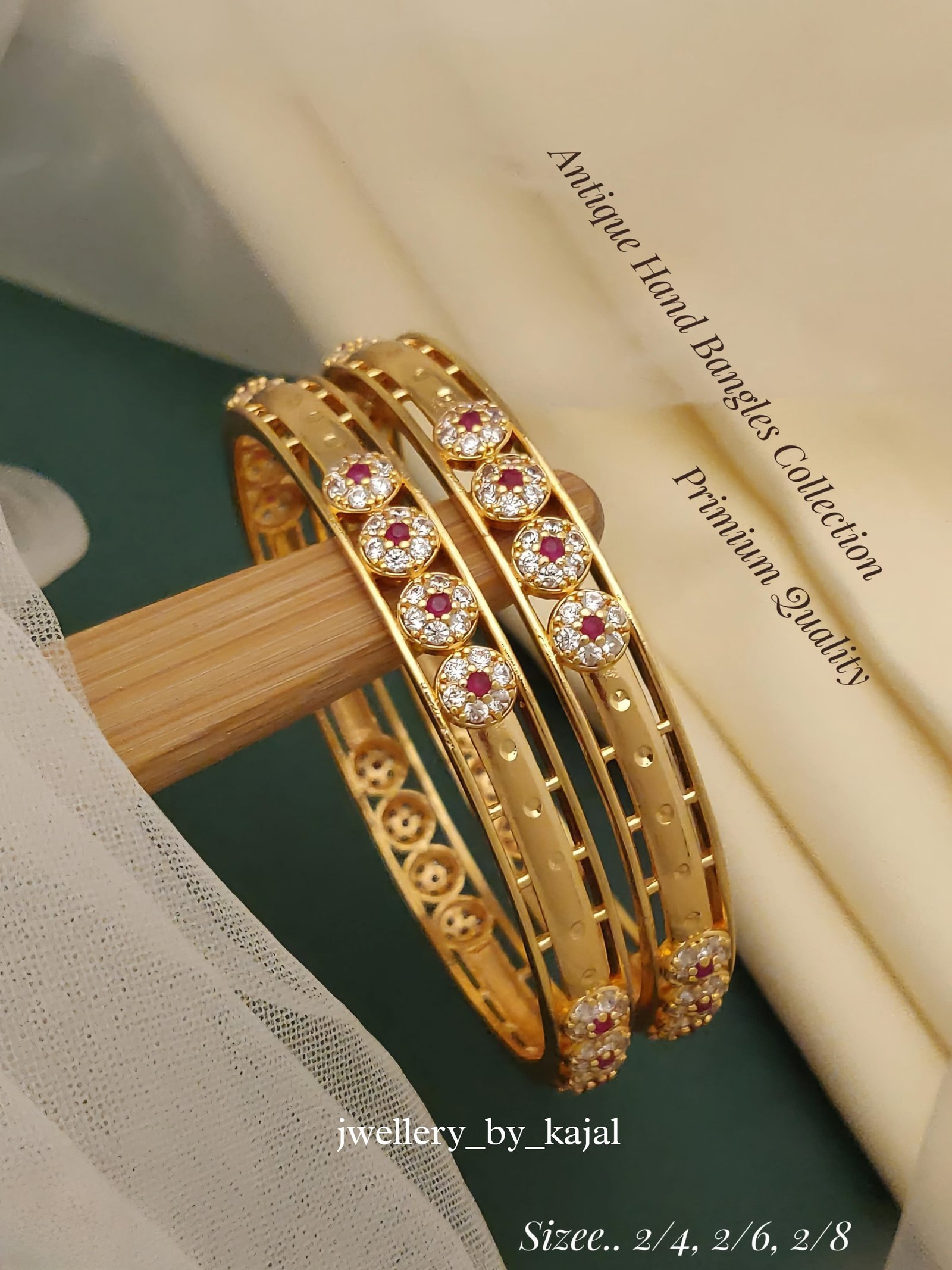 Jwellery by kajal RED stone Antique Hand Bangel collection High Gold