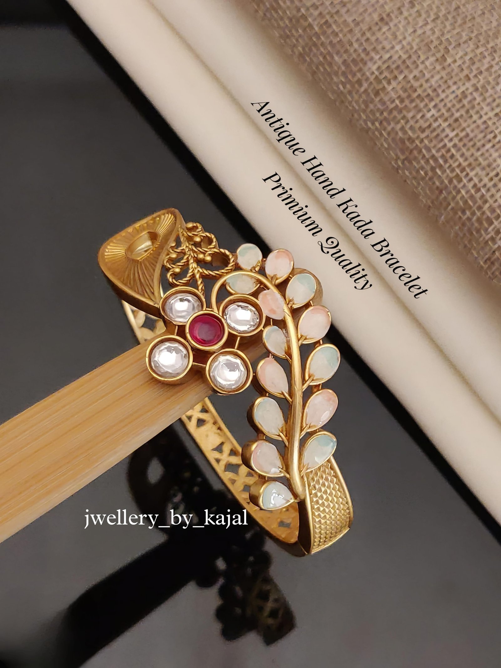 kundan Touch Adjustable Pink Stone Bracelet - PREMIUM LOOK JEWELLERY