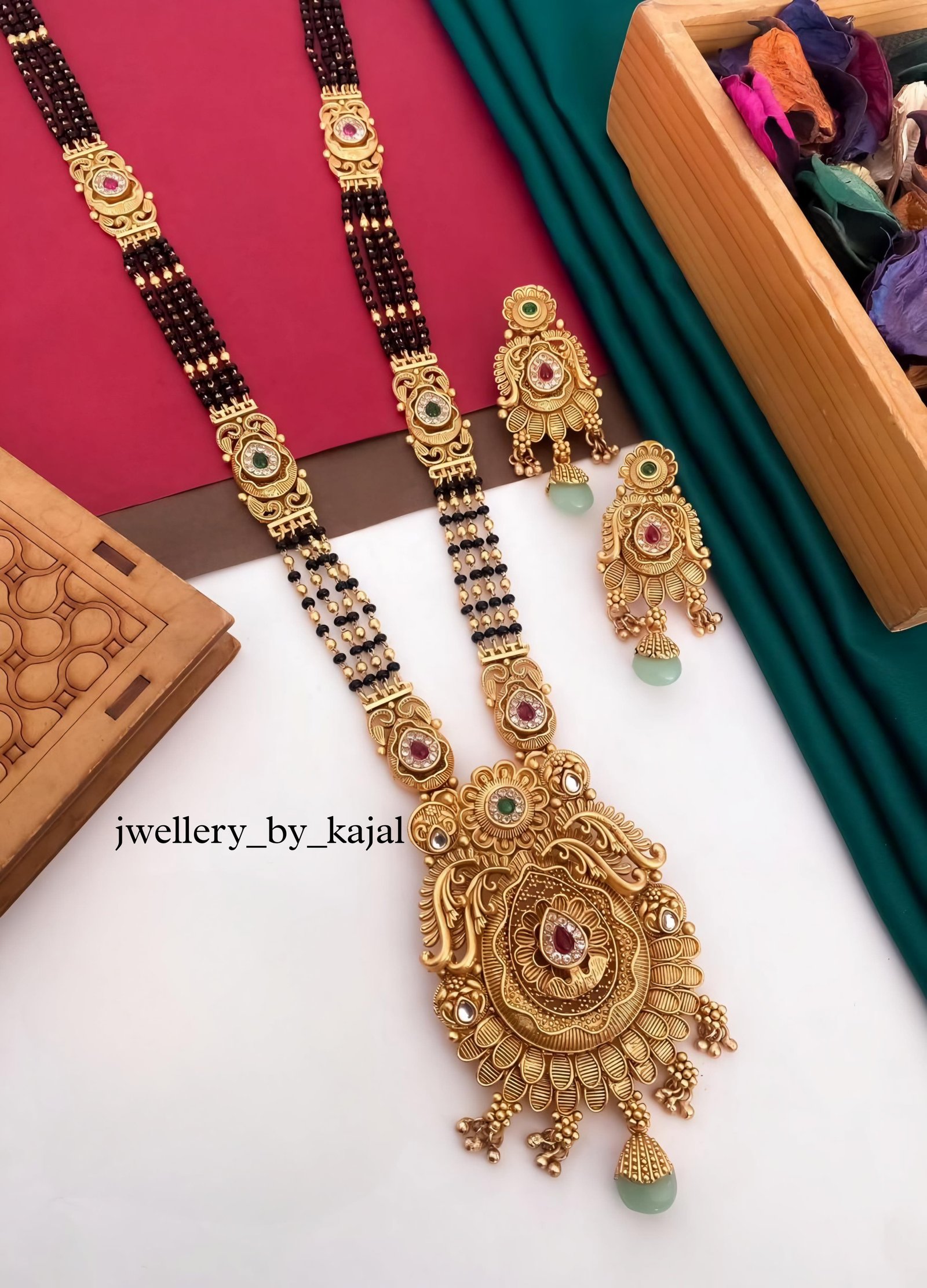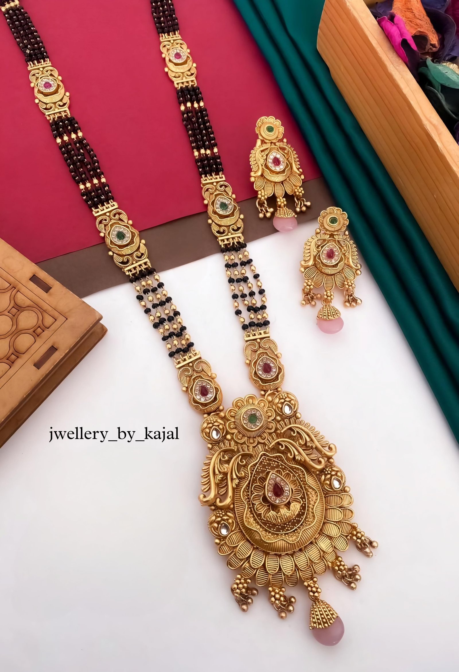 MATERIAL : - RAJWADI LONG MANGALSUTRA WITH BLACK BEADS AND EARRING