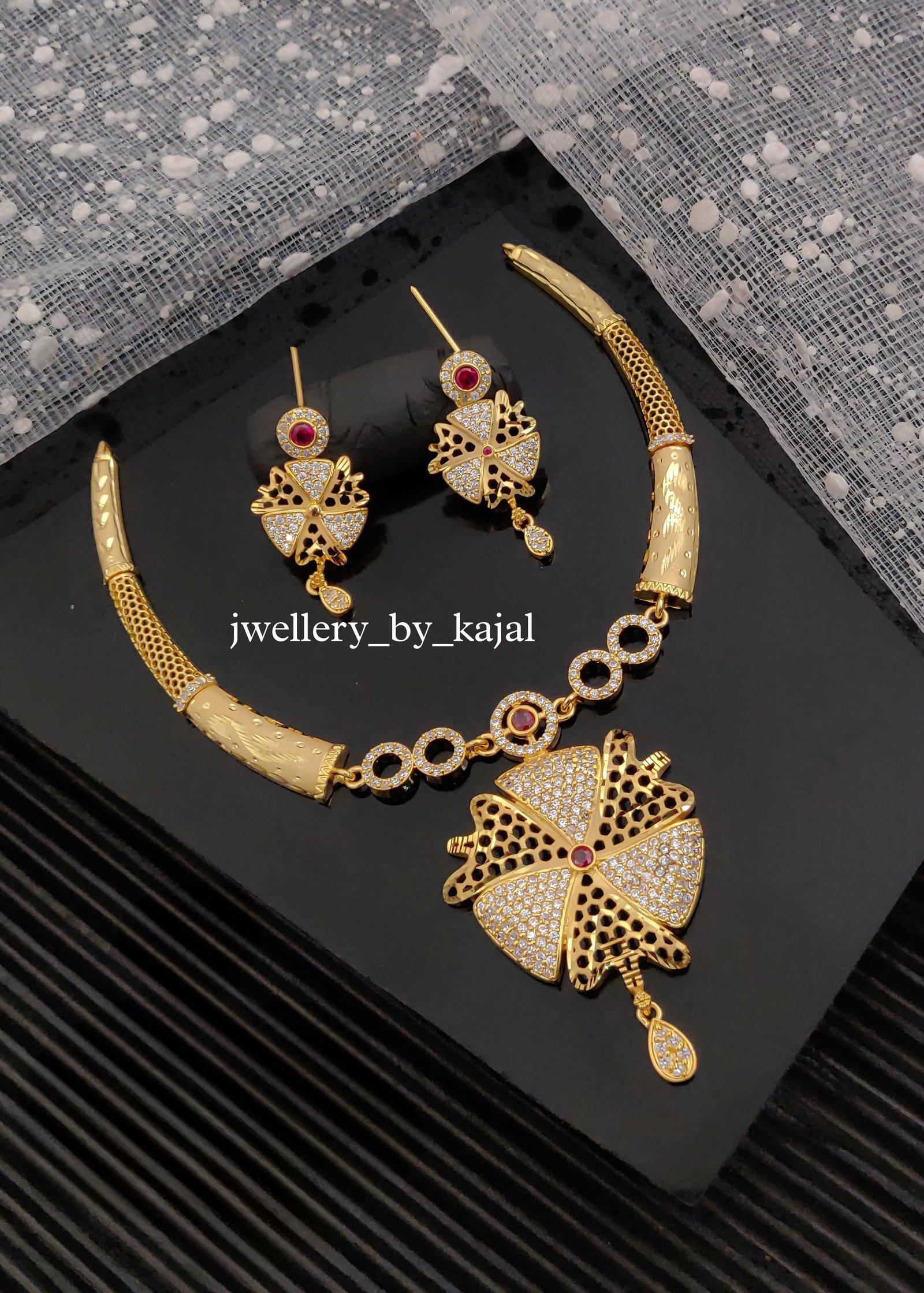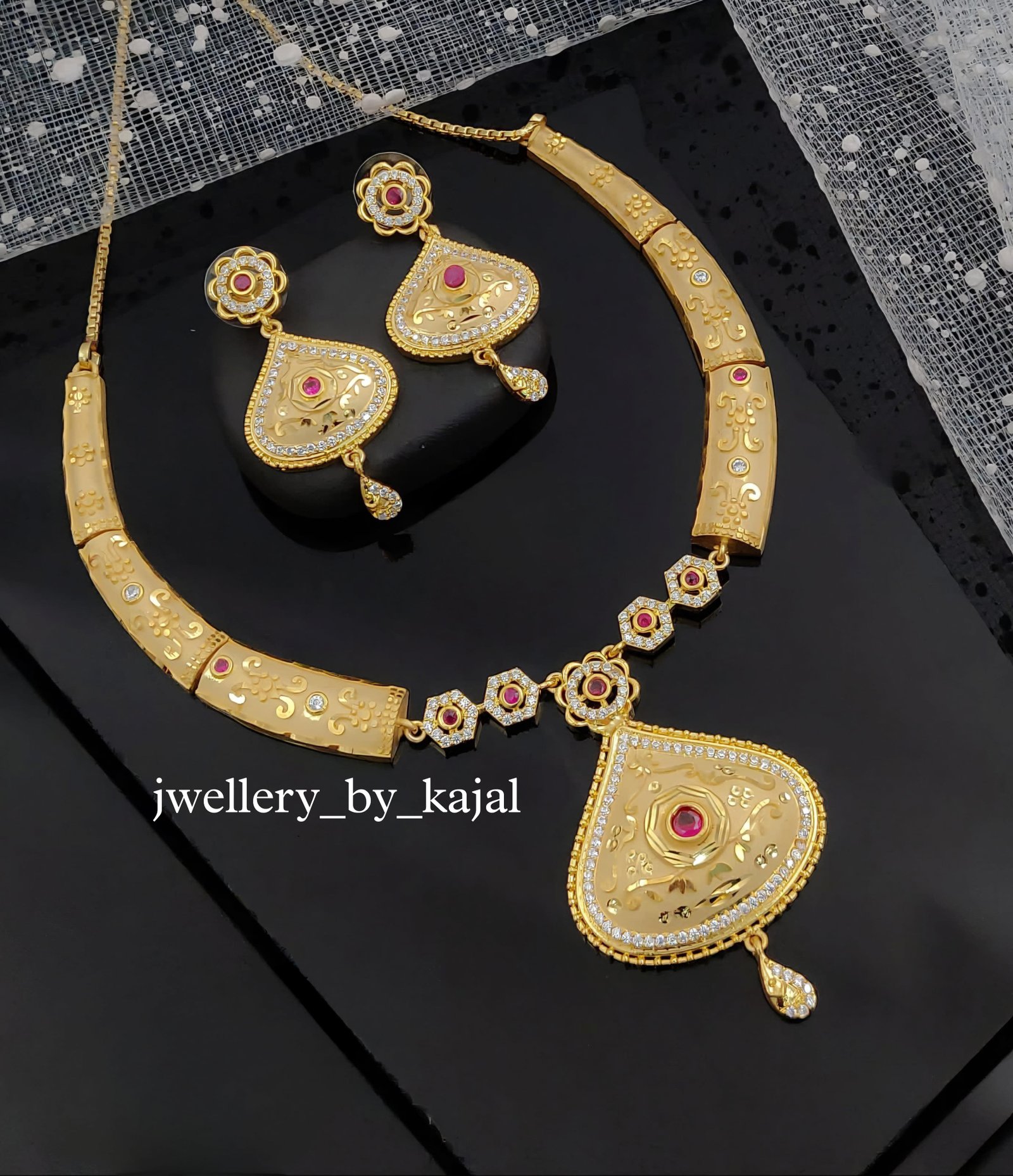 Luxurious Gleam Gold Forming Necklace Earrings with Diamond Like Plating Jwellery by kajal