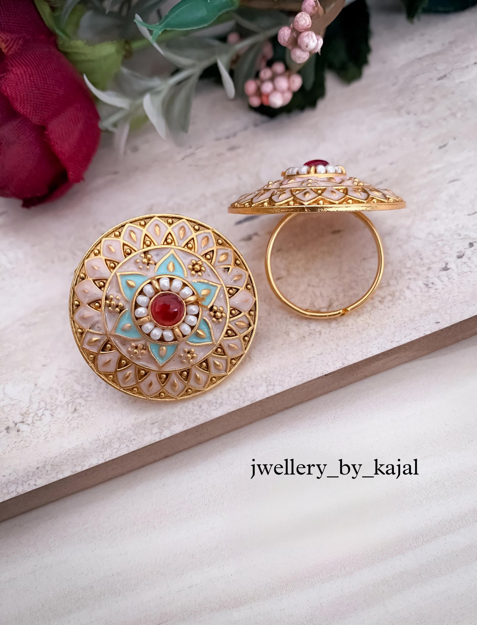 Meenakari Marvel: Beautiful Brass High Gold Adjustable Rings