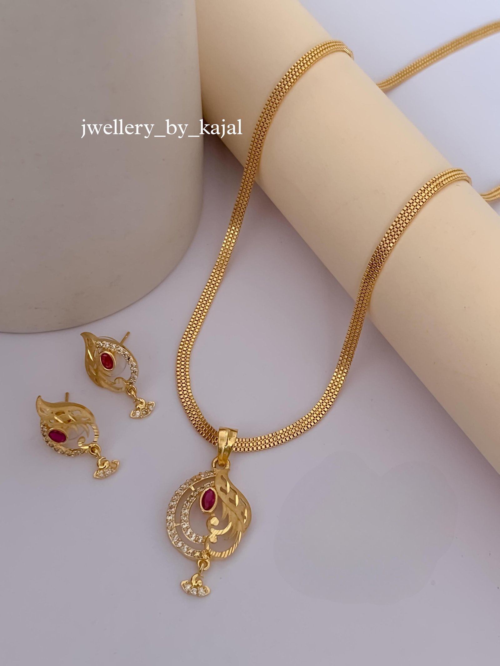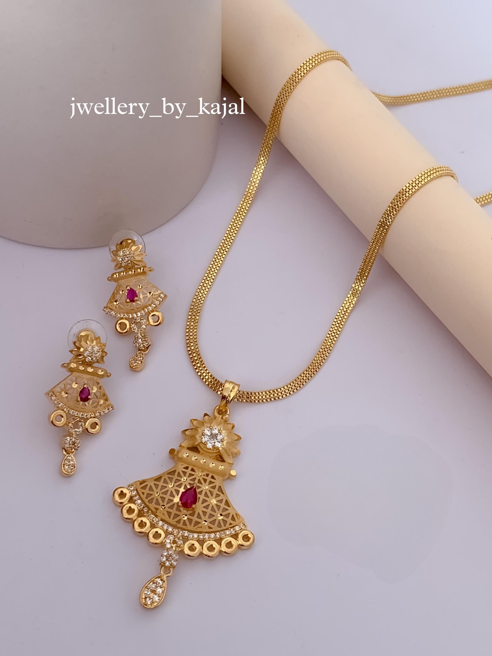 One Gram Gold Forming Polish Pendent Set with Earring - SUPREME LUXURY JEWELLERY