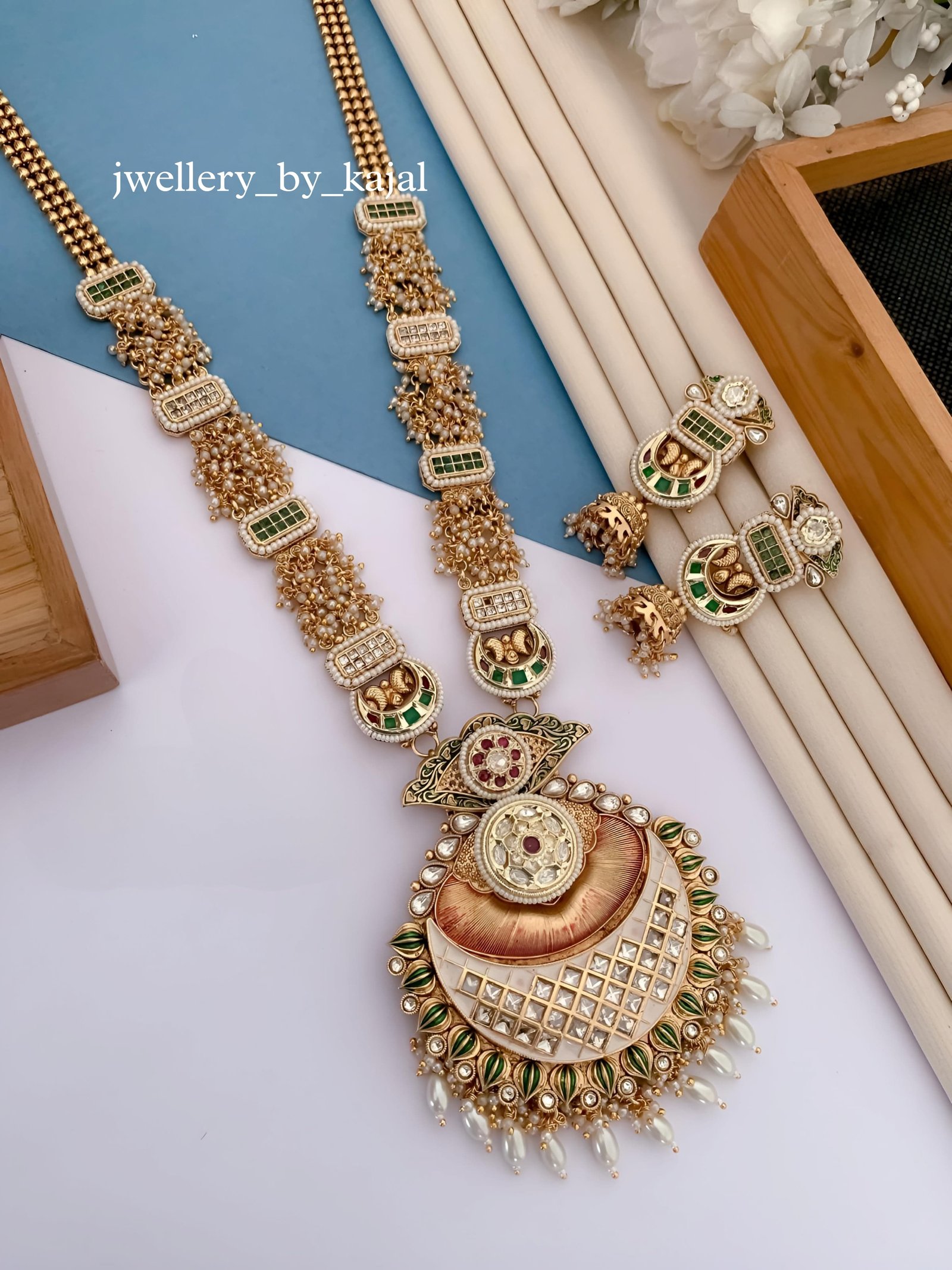 Opulent 24K High-Gold Brass Rani Haar Set with Earrings – Perfect for Weddings & Celebrations