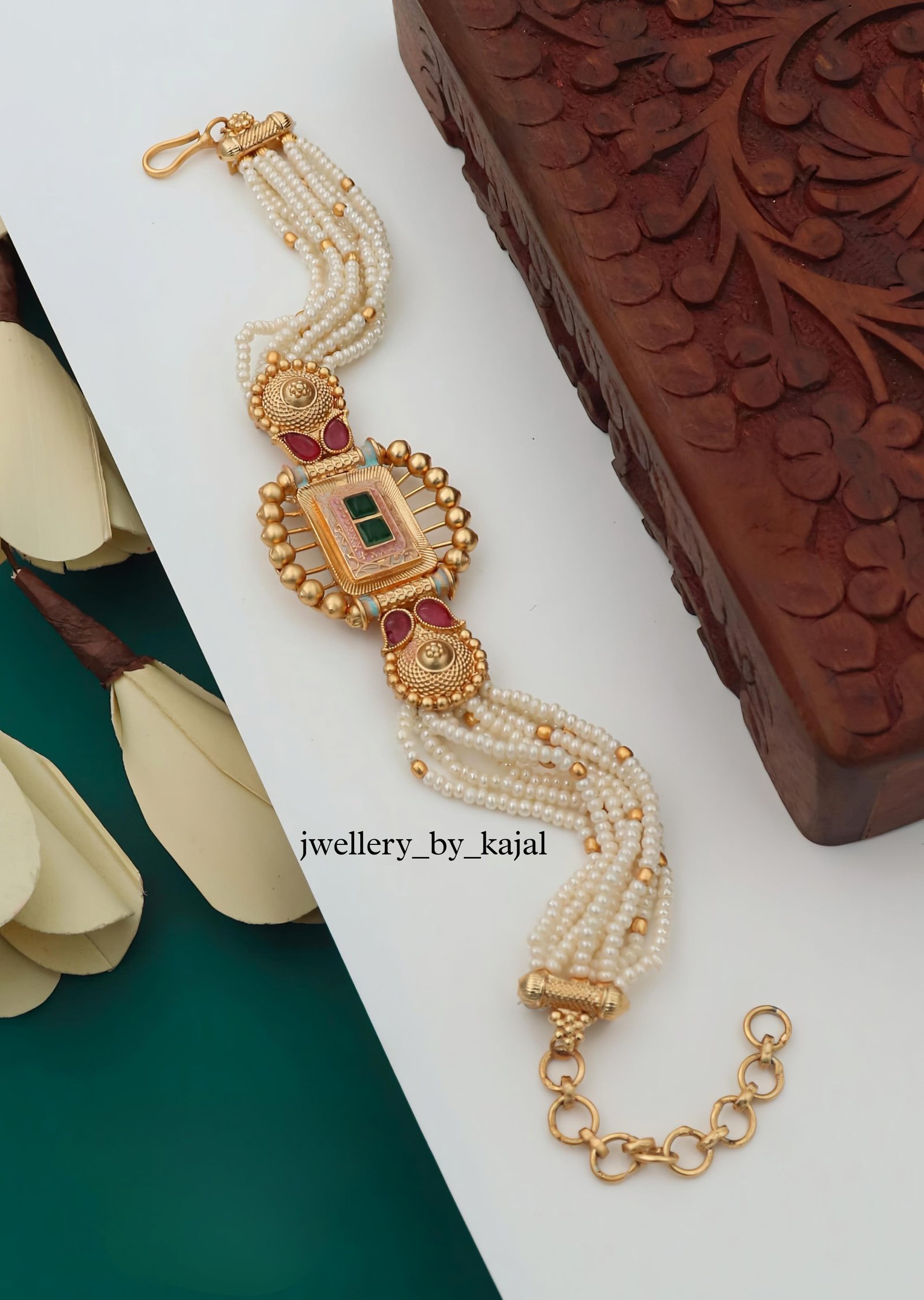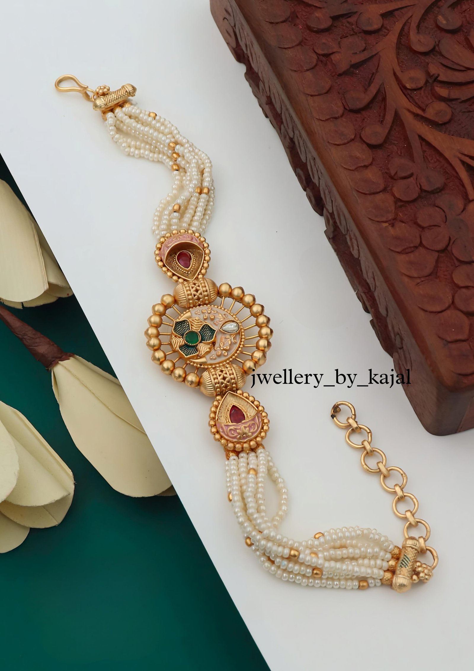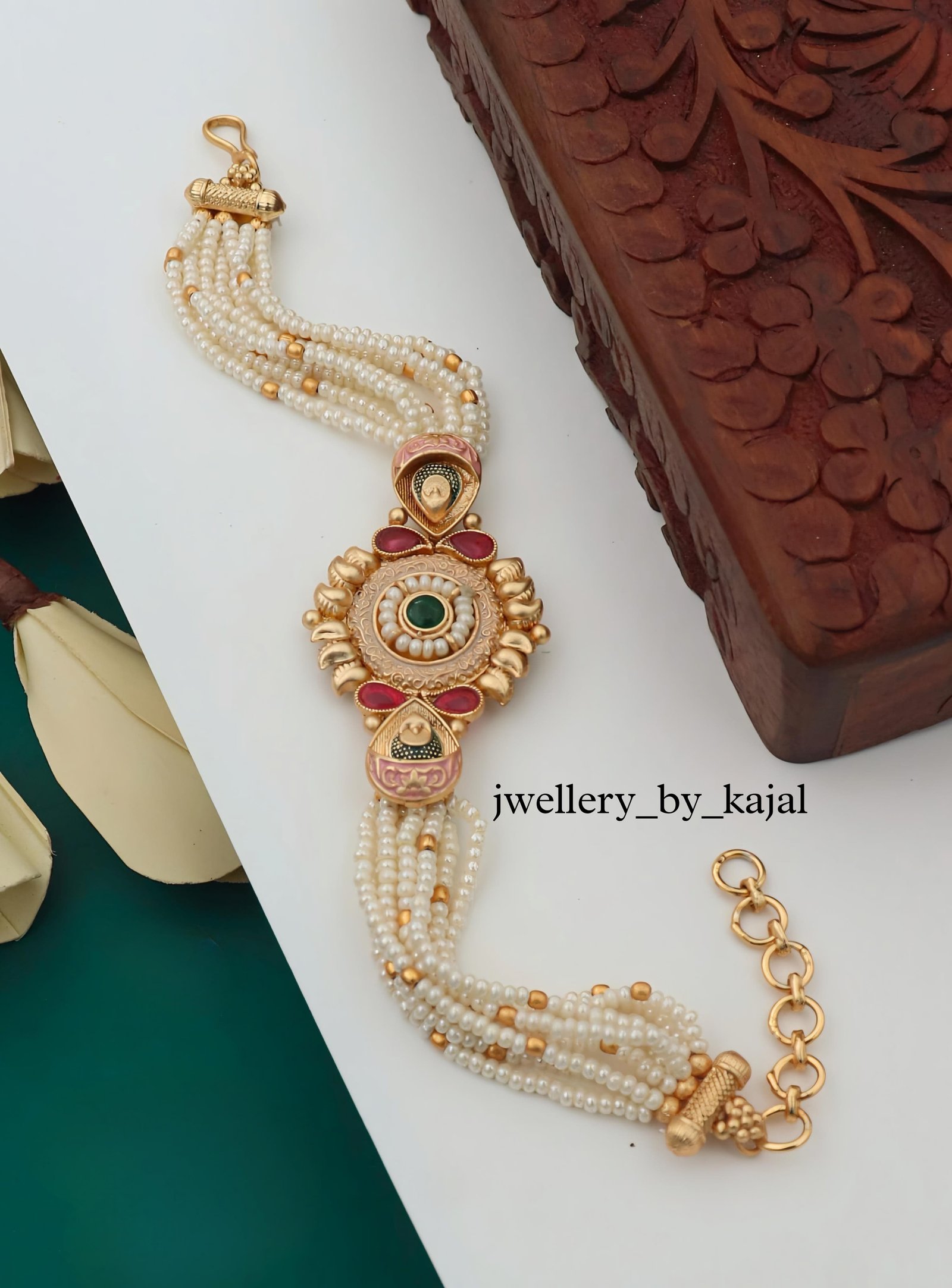 Pearl Adjustable Kundan Bracelet Adjustable Size - PREMIUM LOOK JEWELLERY