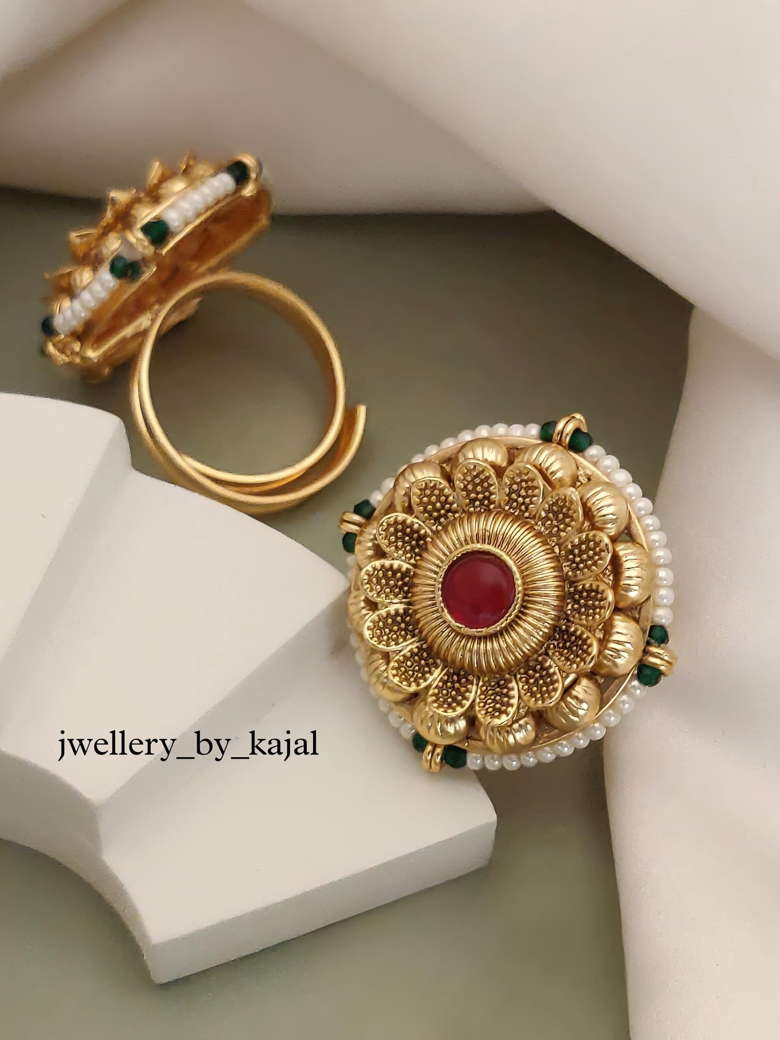 Pearl Big Kundan Adjustable Ring - PREMIUM LOOK JEWELLERY