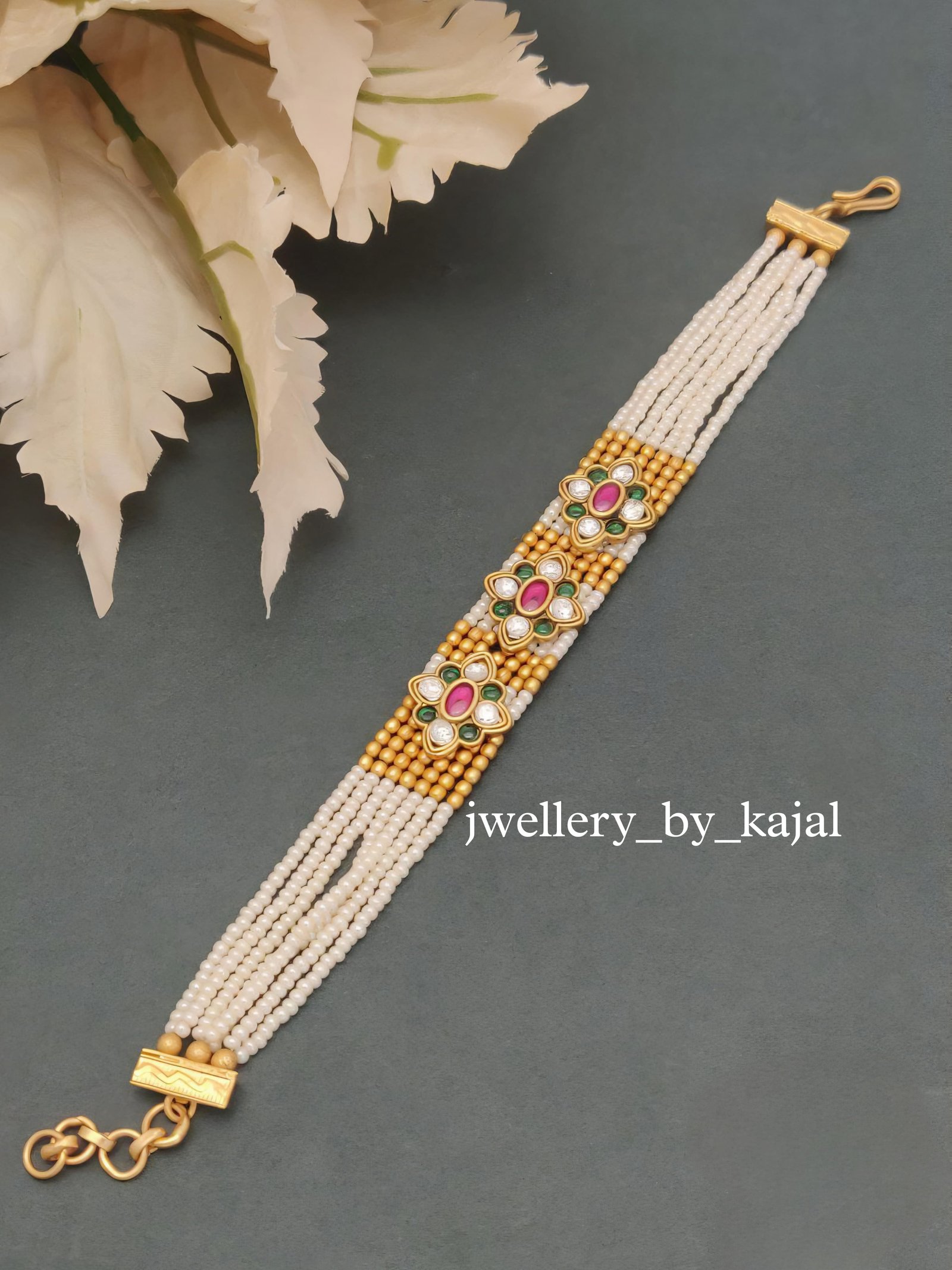 Pearl Brass Adjustable Bracelet with Kundan Work - Supreme Quality