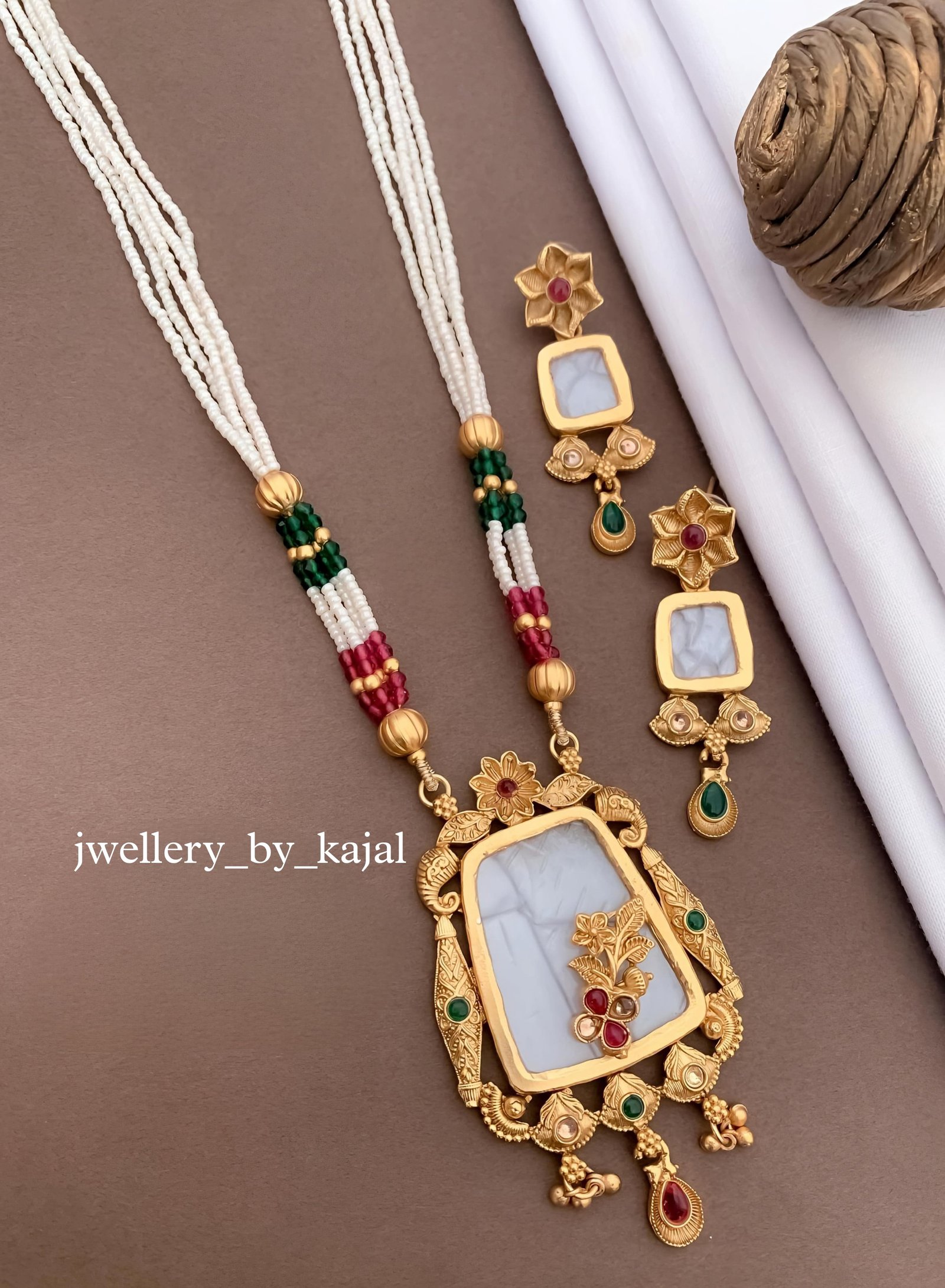 Pearl Pendant Set with Moti Long Mala & Earrings Jwellery by kajal
