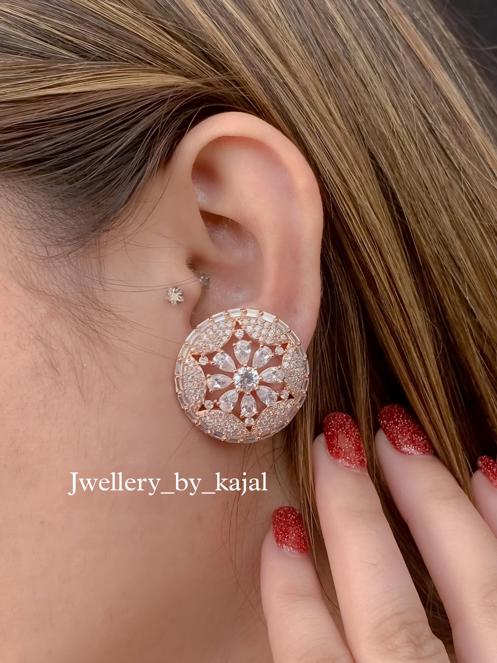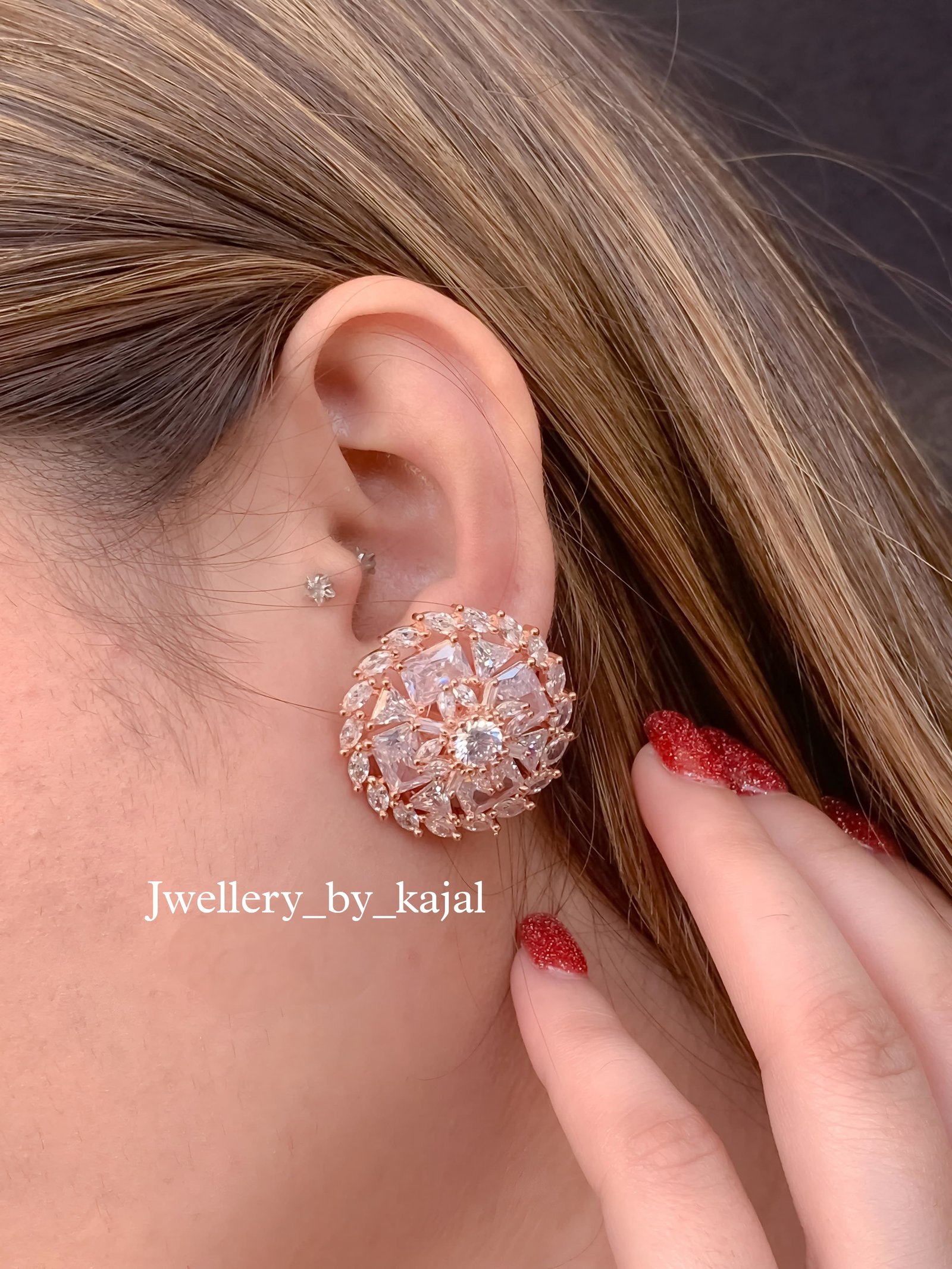✨Product: -Pink Cubic Zirconia Rose Gold Plated Stud Earrings for Women | Elegant & Stylish