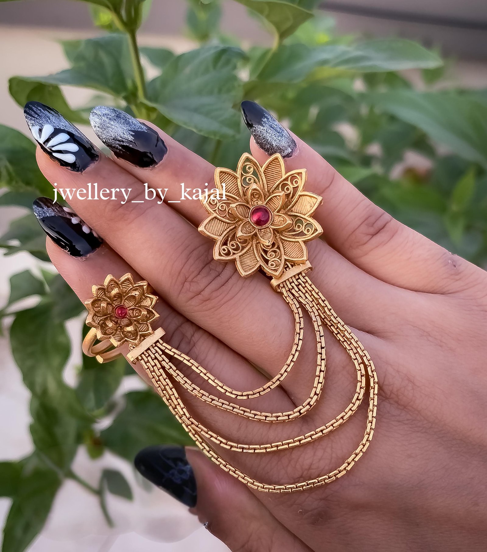 Rajwadi Gold Plated Single Finger Chain Ring – Zinc Crafted