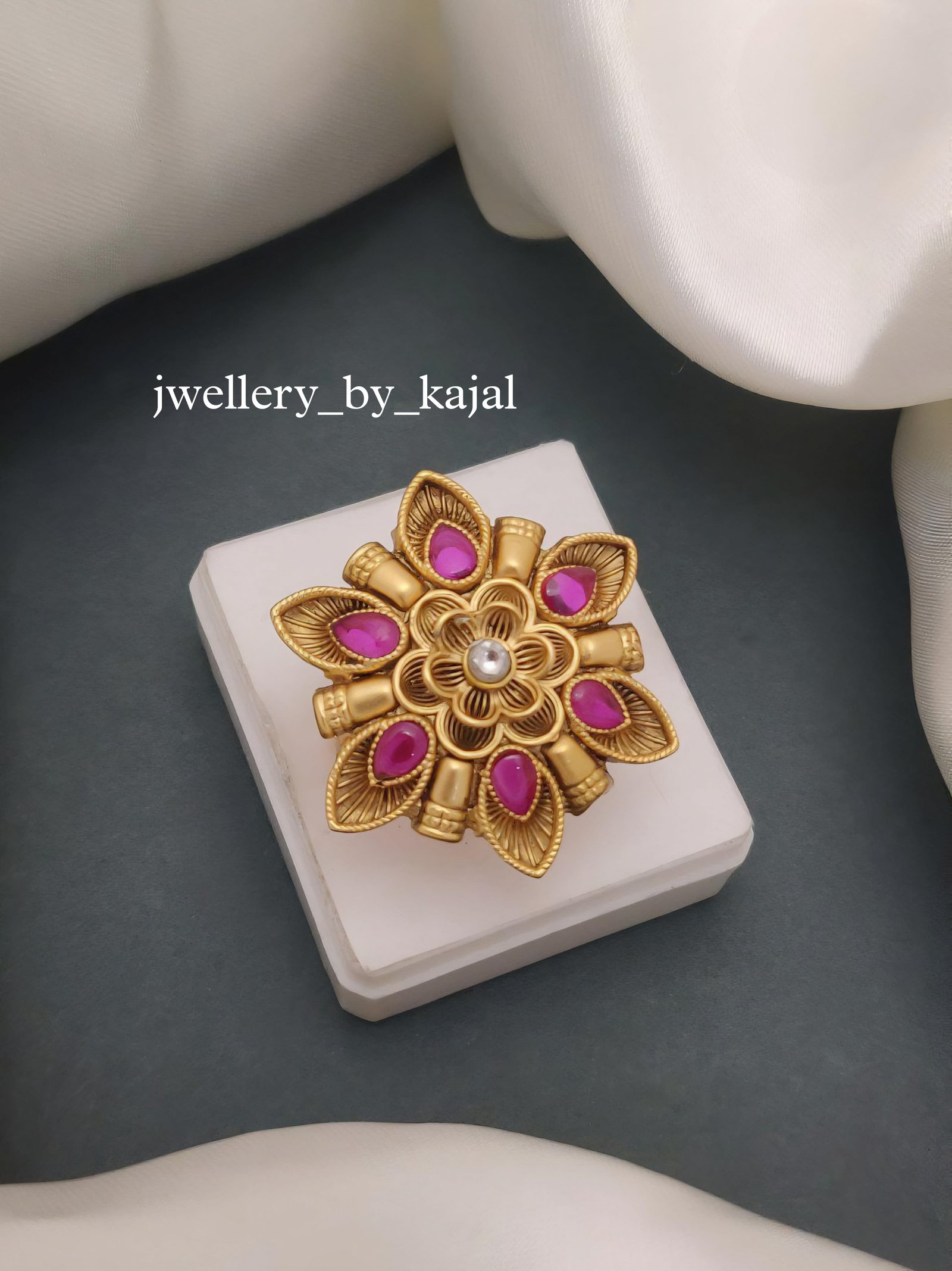 Red Premium Brass Rings with Real Gold Look-PREMIUM LOOK JEWELRY