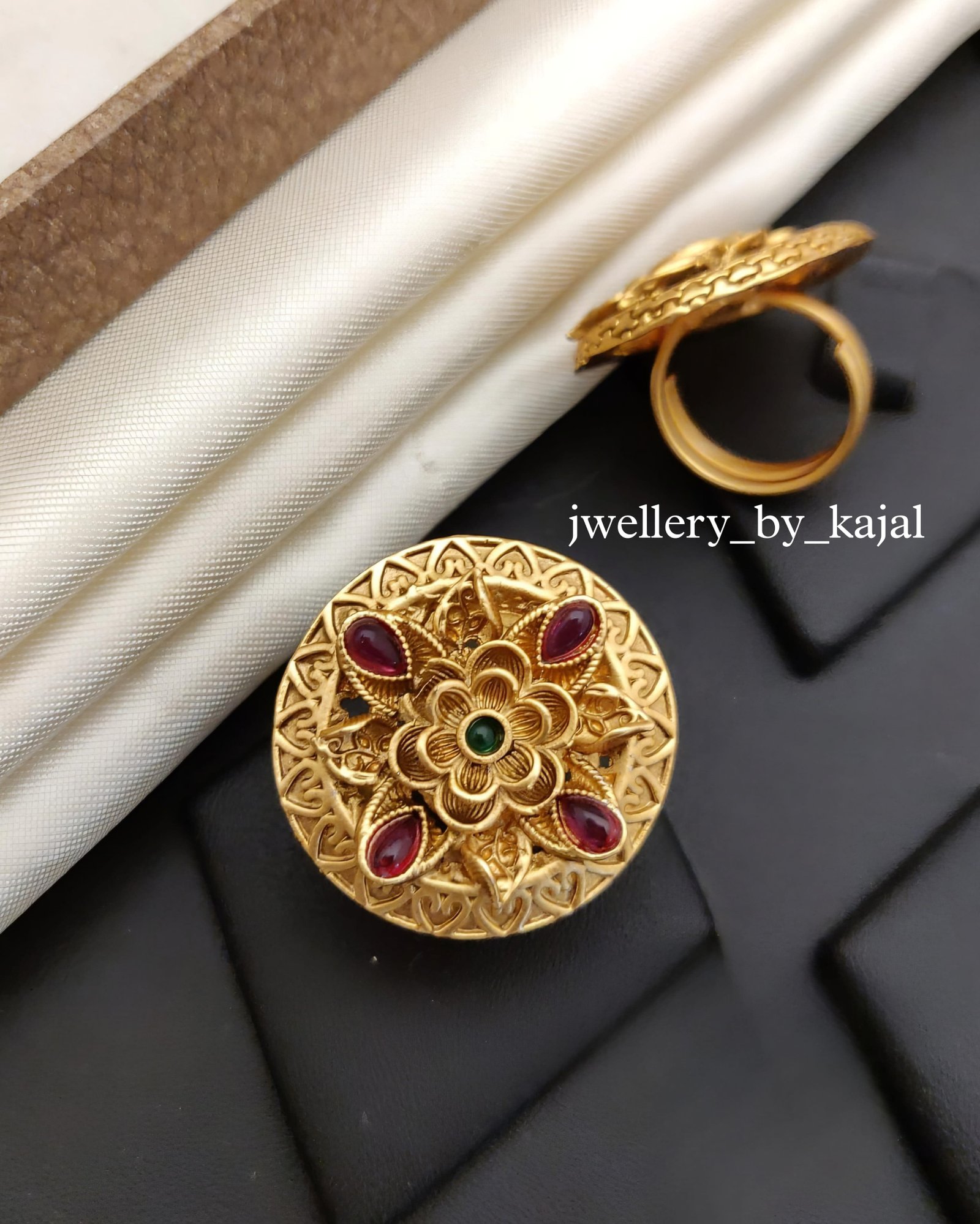 Kundan Big Size Adjustable ring colour available - PREMIUM LOOK
