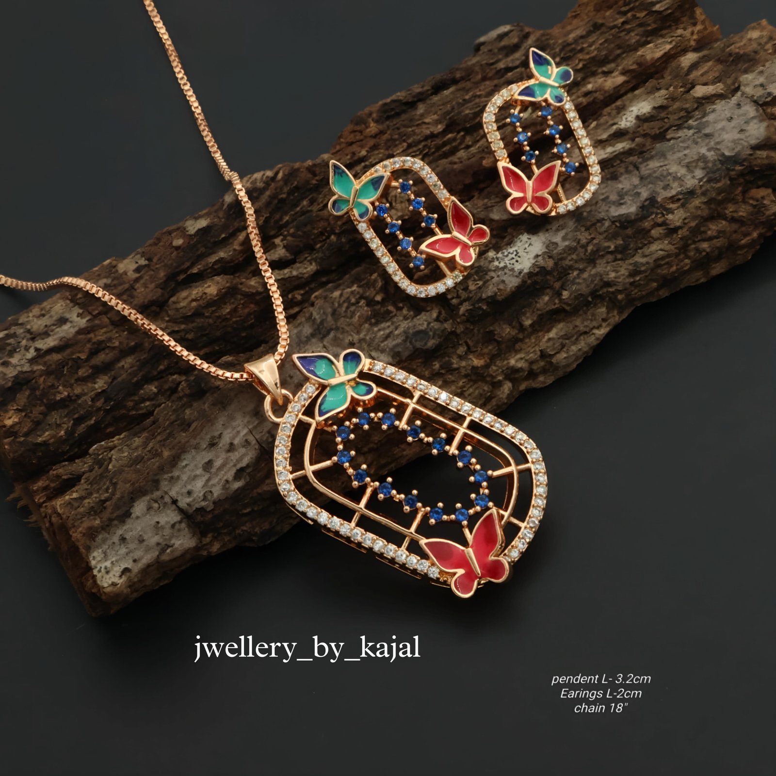 Rose Gold Butterfly Pendant Set – Feminine Charm in Every Detail
