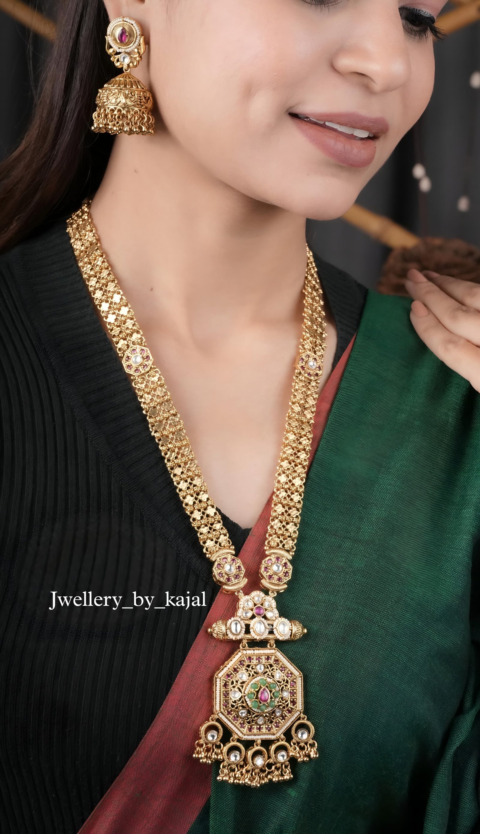 Royal Brass Long Necklace Set with Earrings – High Gold 22k Finish