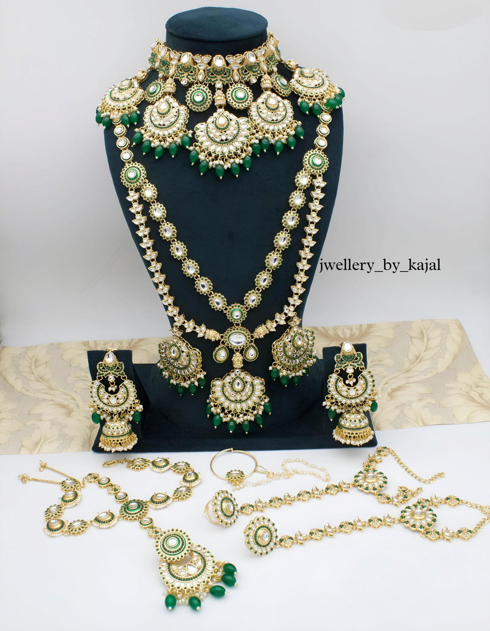 Royal Bridal Look: Kundan Full Dulhan Set with Necklace, Earrings & Tikka